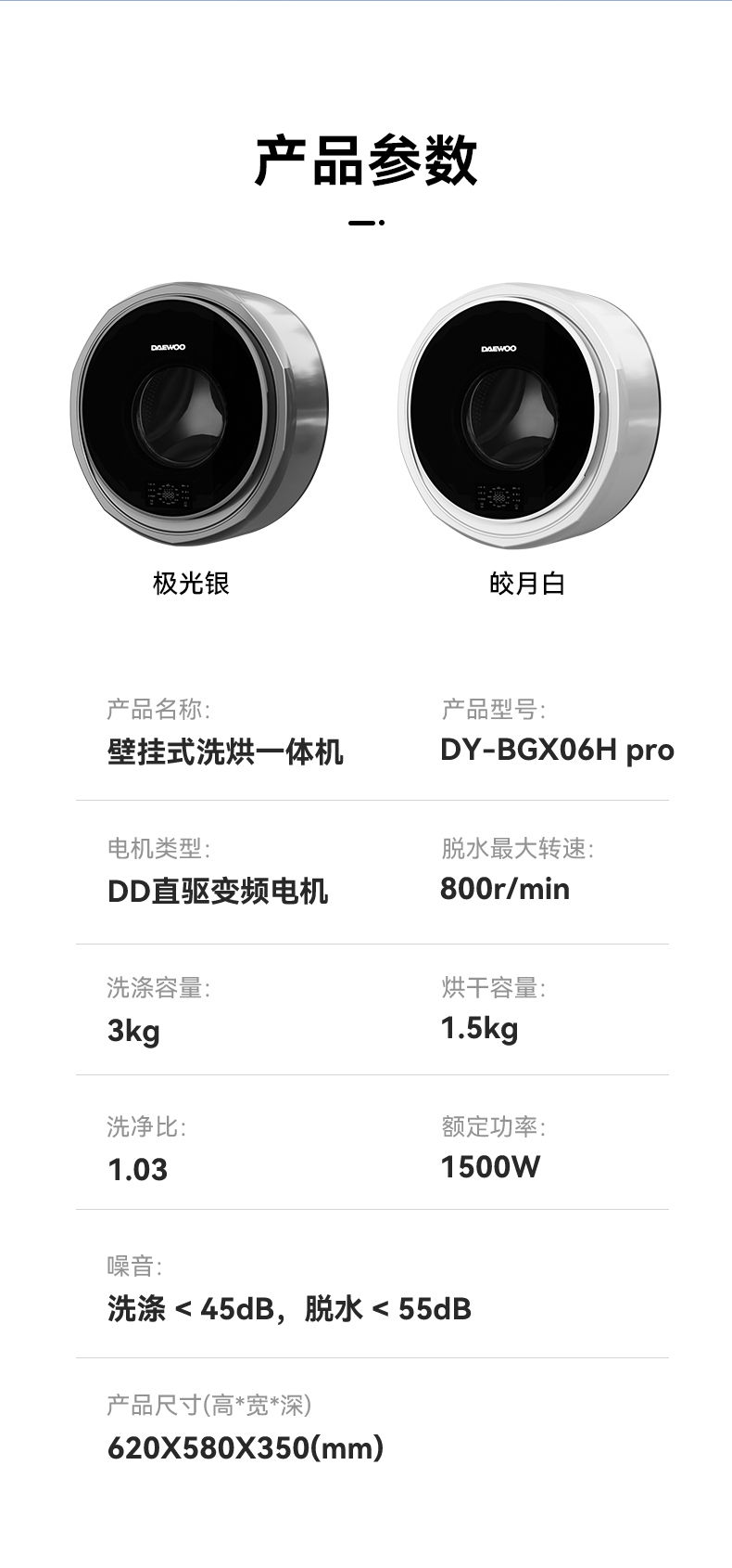 大宇(DAEWOO)迷你壁挂式洗衣机 06Hpro 单位(台) 极光银
