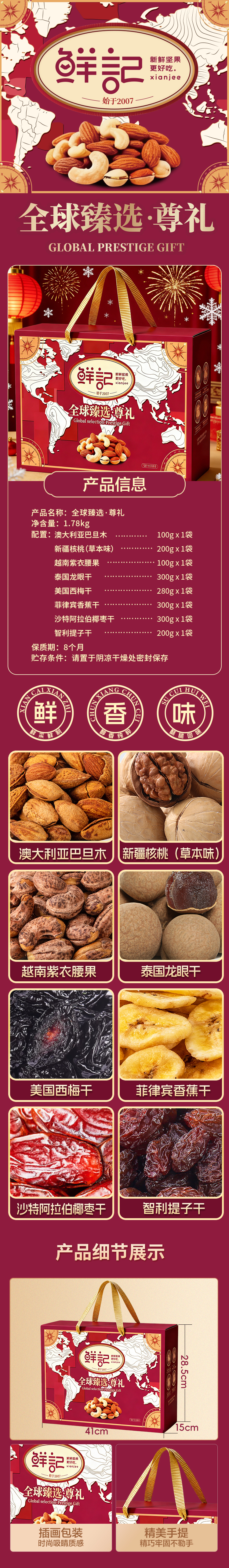 鲜记 高端坚果炒货果干组合 全球臻选尊礼 1.78kg*1盒 混色(单位:盒)