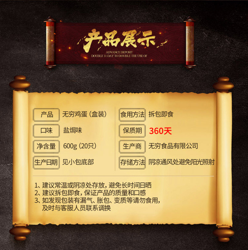 无穷 盐焗鸡蛋广东特产休闲办公零食 600g盐焗鸡蛋(20只) 天蓝色