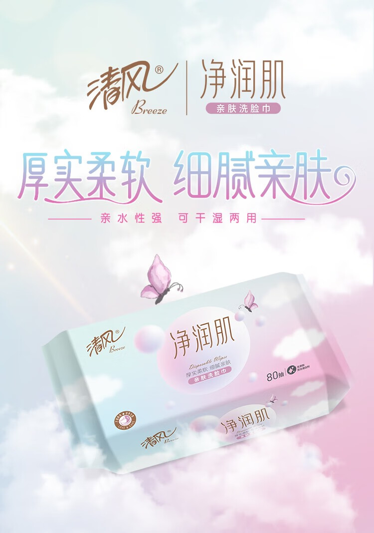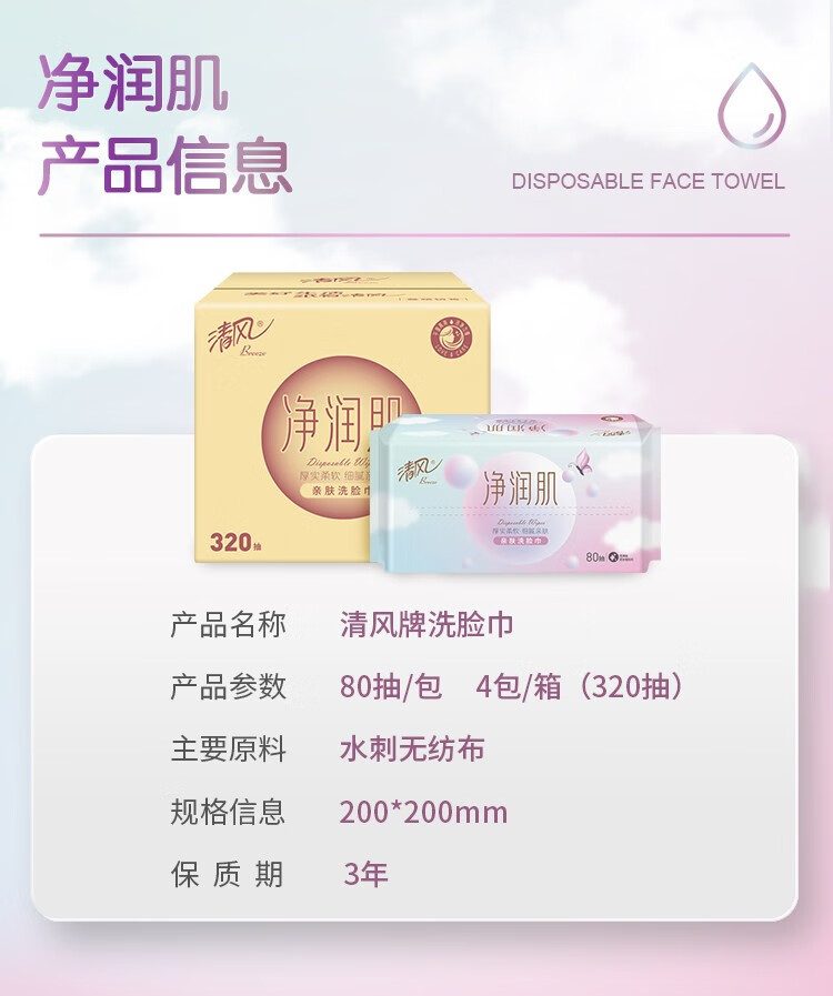 清风 抽取式棉柔巾80抽4包/箱 BCB80FE1 BCB80FE1