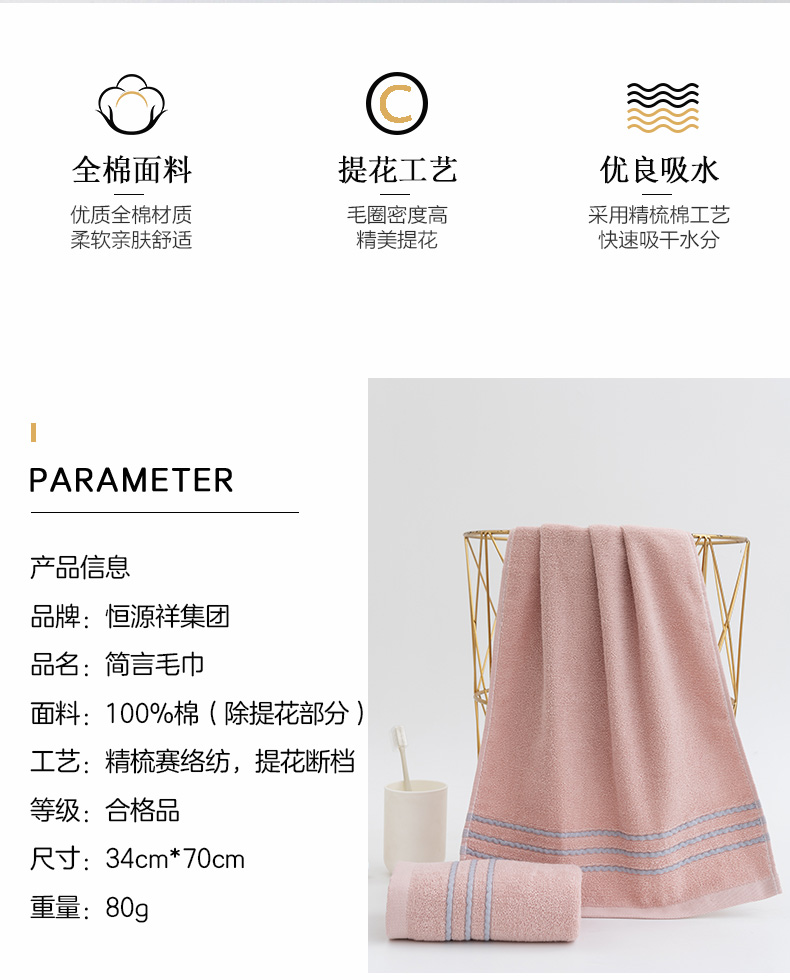 简言毛巾单条袋装(粉/灰)单条装颜色随机