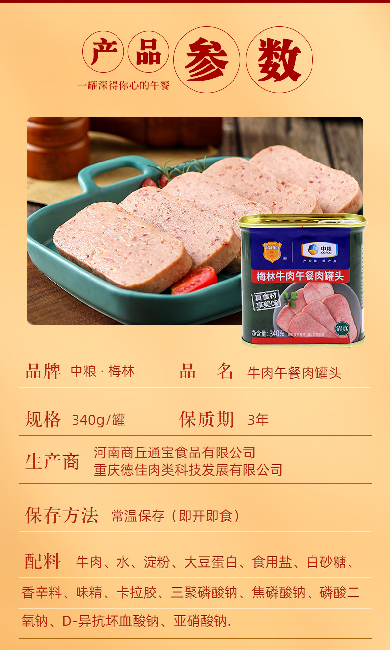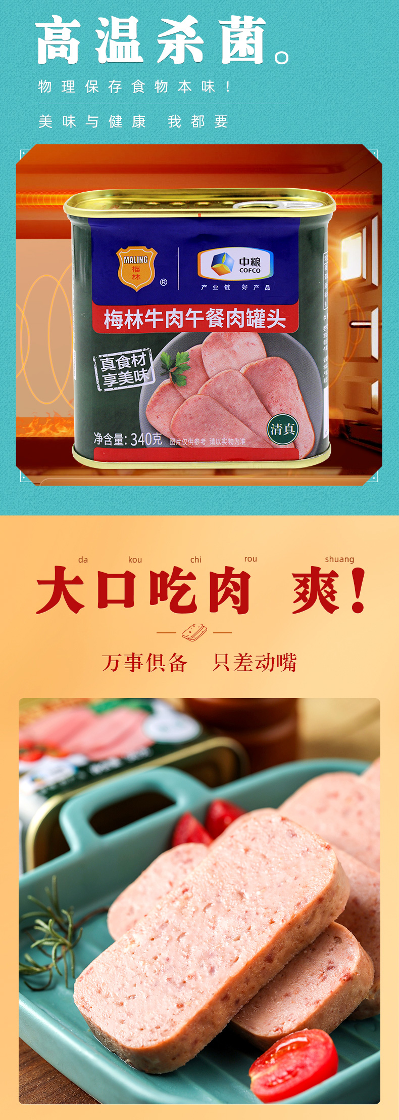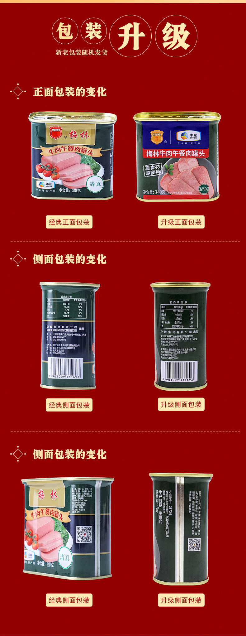 梅林清真牛肉午餐肉罐头340g*24罐(原装整箱) 混色