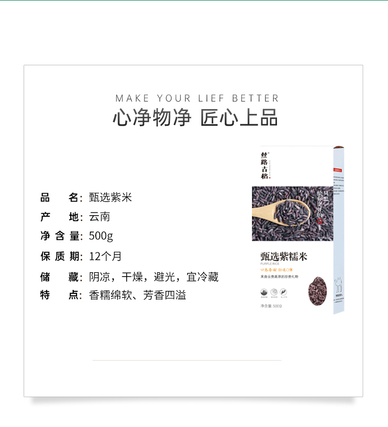 北纬三十度 | 丝路古稻甄选紫糯米500g优质杂粮粗粮五谷杂粮颗粒饱满营养丰富单位:盒 白色