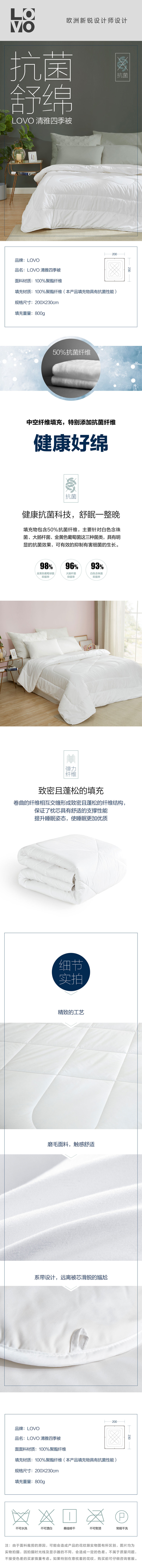 罗莱生活荣誉出品LOVO 清雅四季被200*230cm(单位:条) 白色