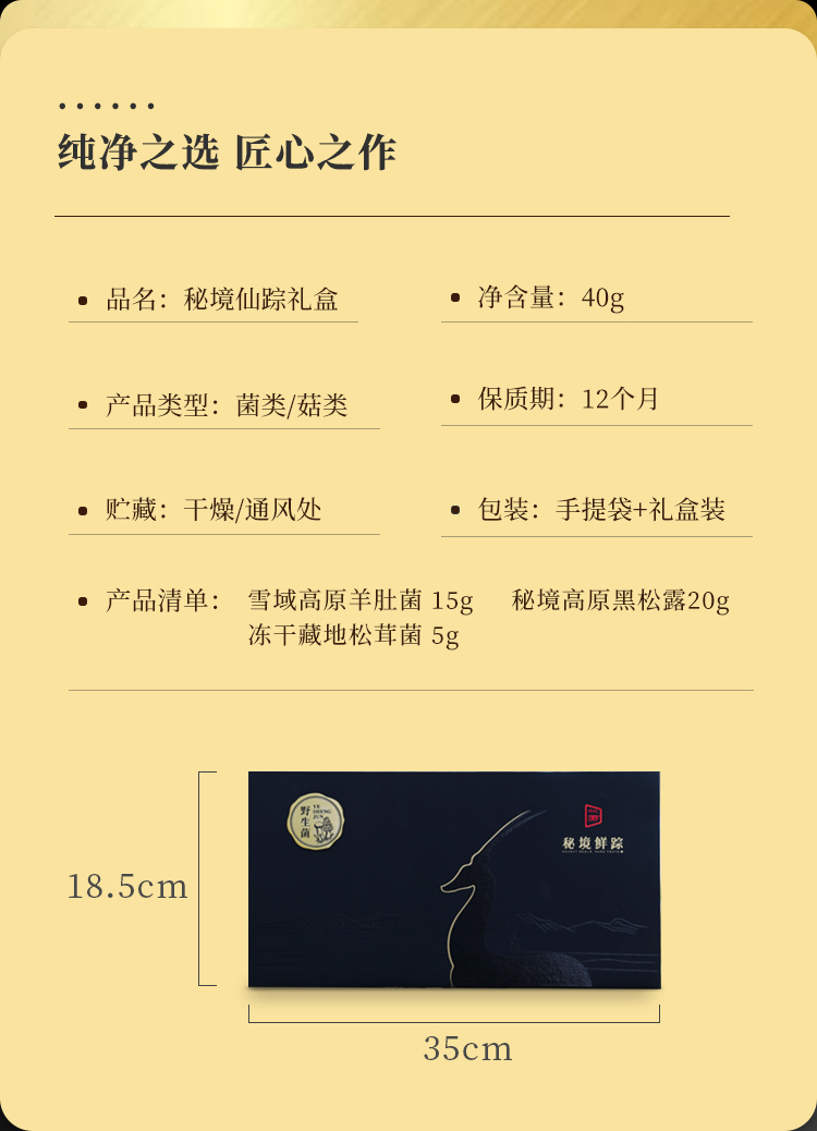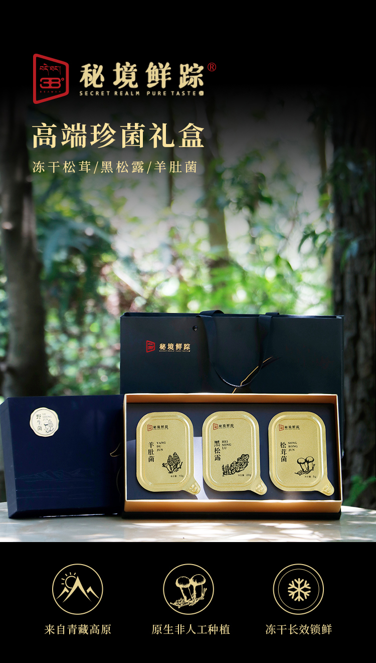 北纬三十八度 | 秘境鲜踪野生菌礼盒40g混合野生菌营养丰富原生态纯野生高品质菌单位:盒 黑色