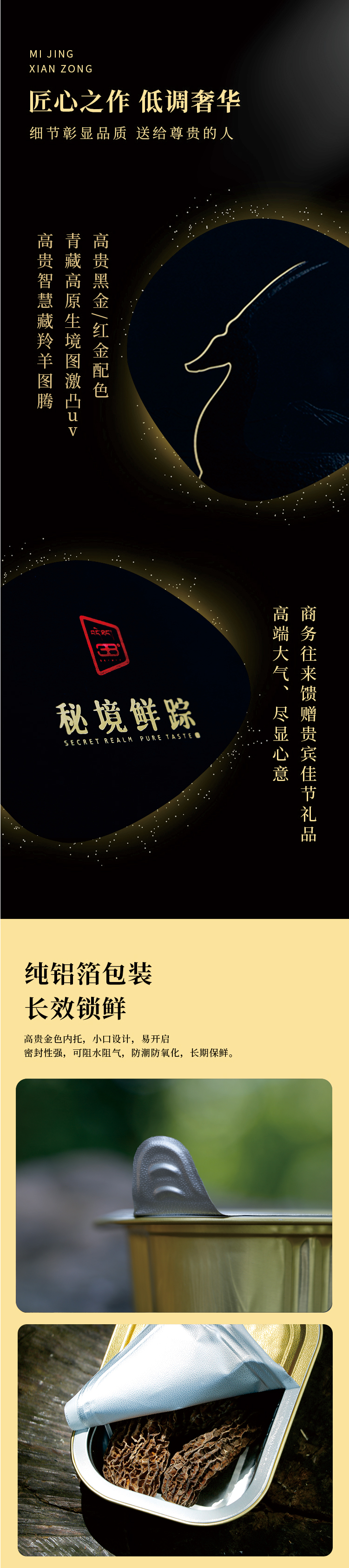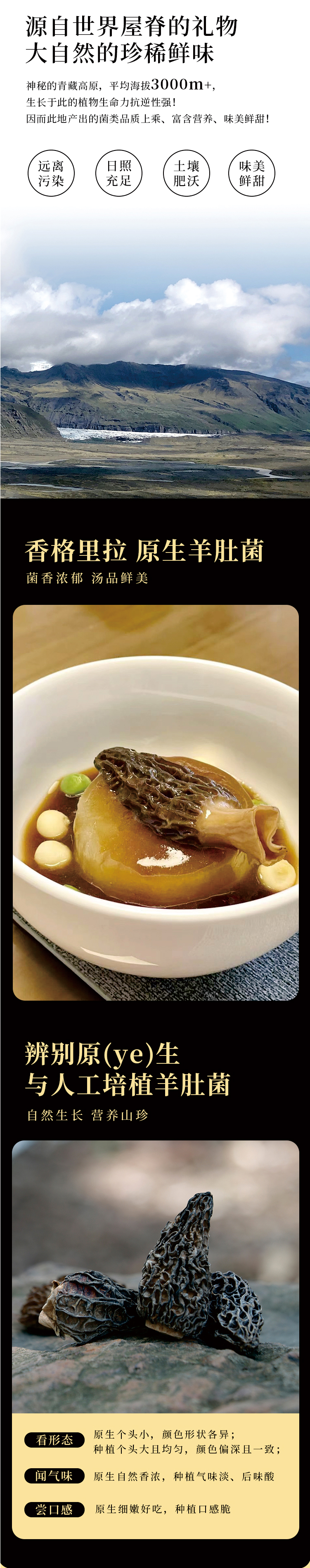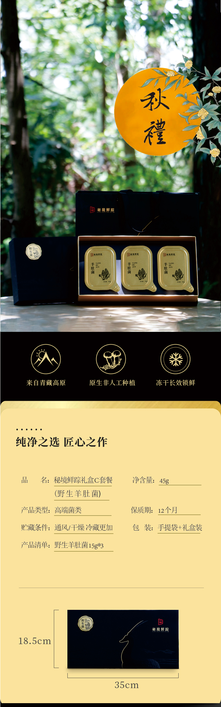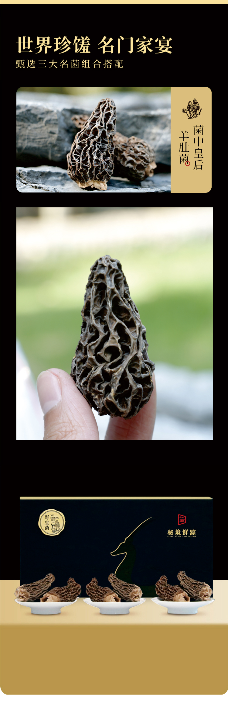 北纬三十八度 | 秘境鲜踪雪域野生羊肚菌礼盒45g味道鲜美香气浓郁营养丰富 单位:盒 黑色