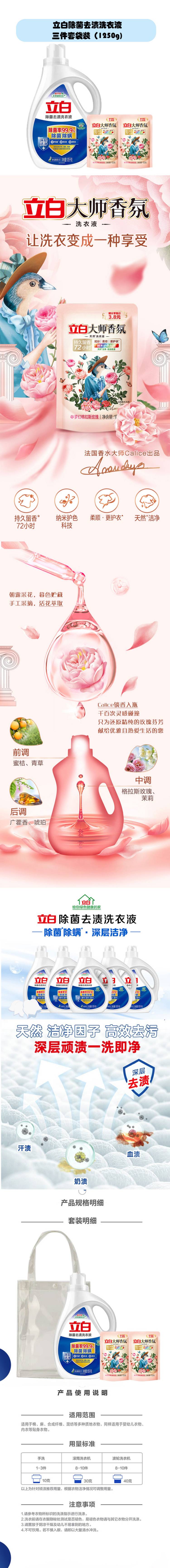 立白除菌去渍洗衣液三件套袋装(1250g)(单位:套) 蓝色