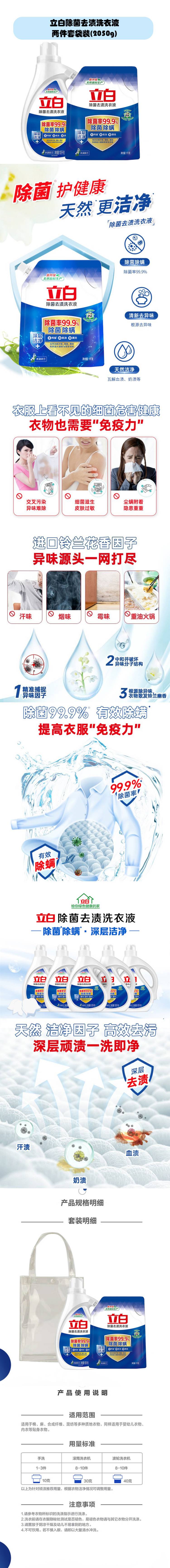 立白除菌去渍洗衣液两件套袋装(2050g)(单位:套) 蓝色