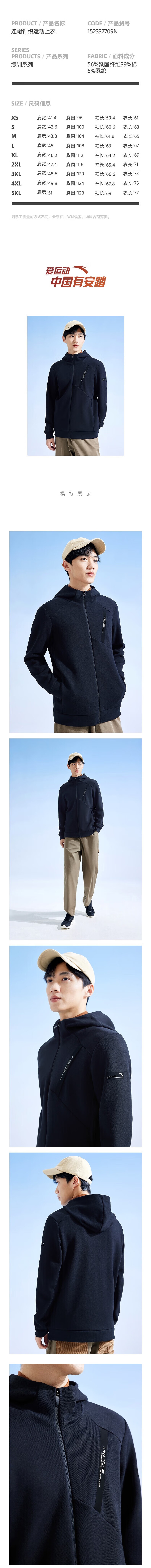 安踏 男夹克/外套 152337709-2 基础黑(单位:件) 152337709-2/4XL