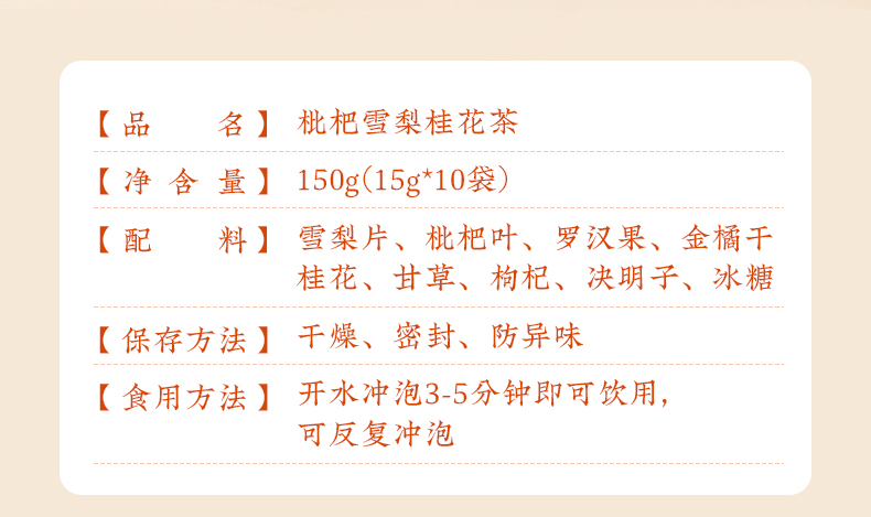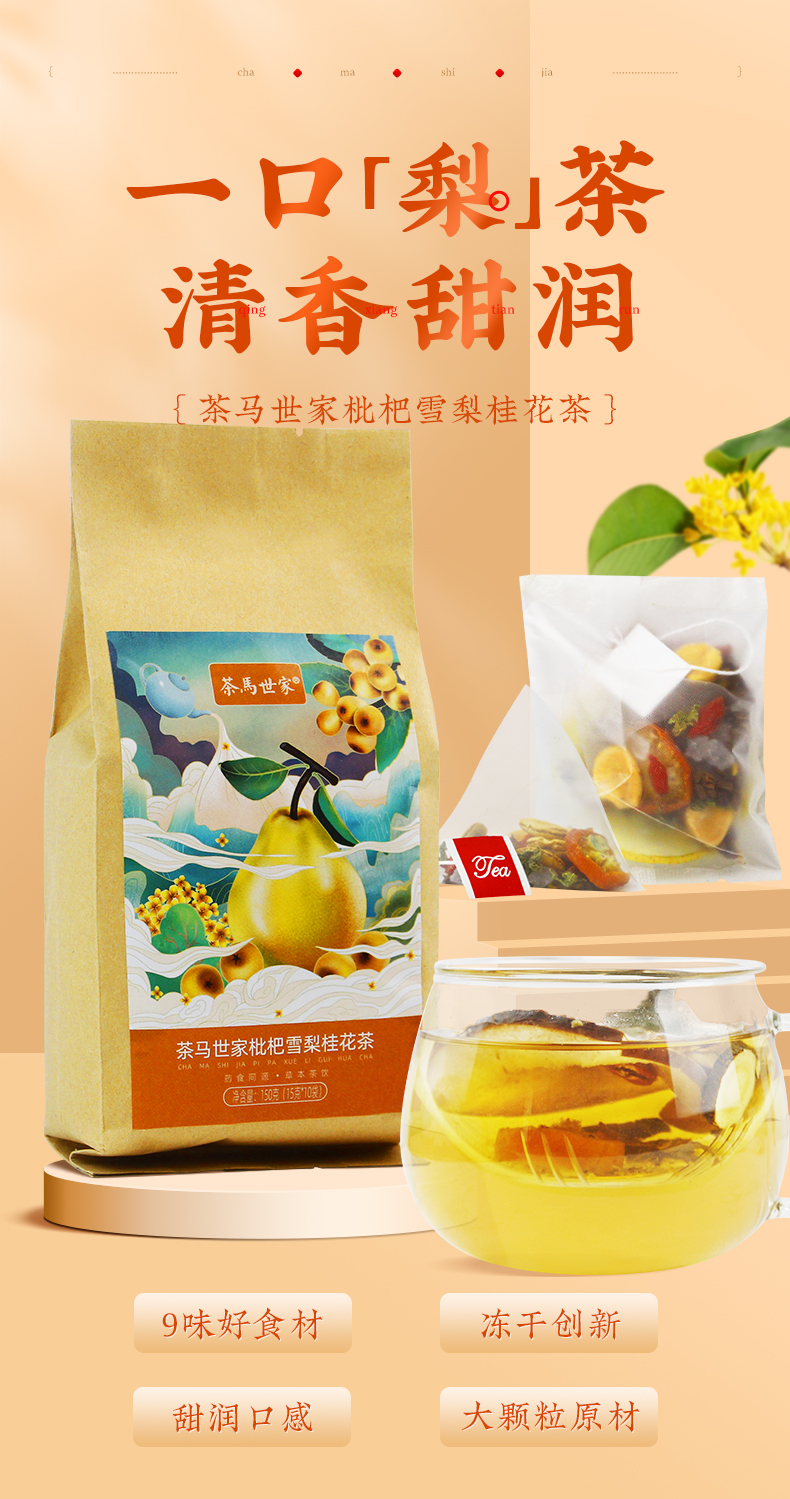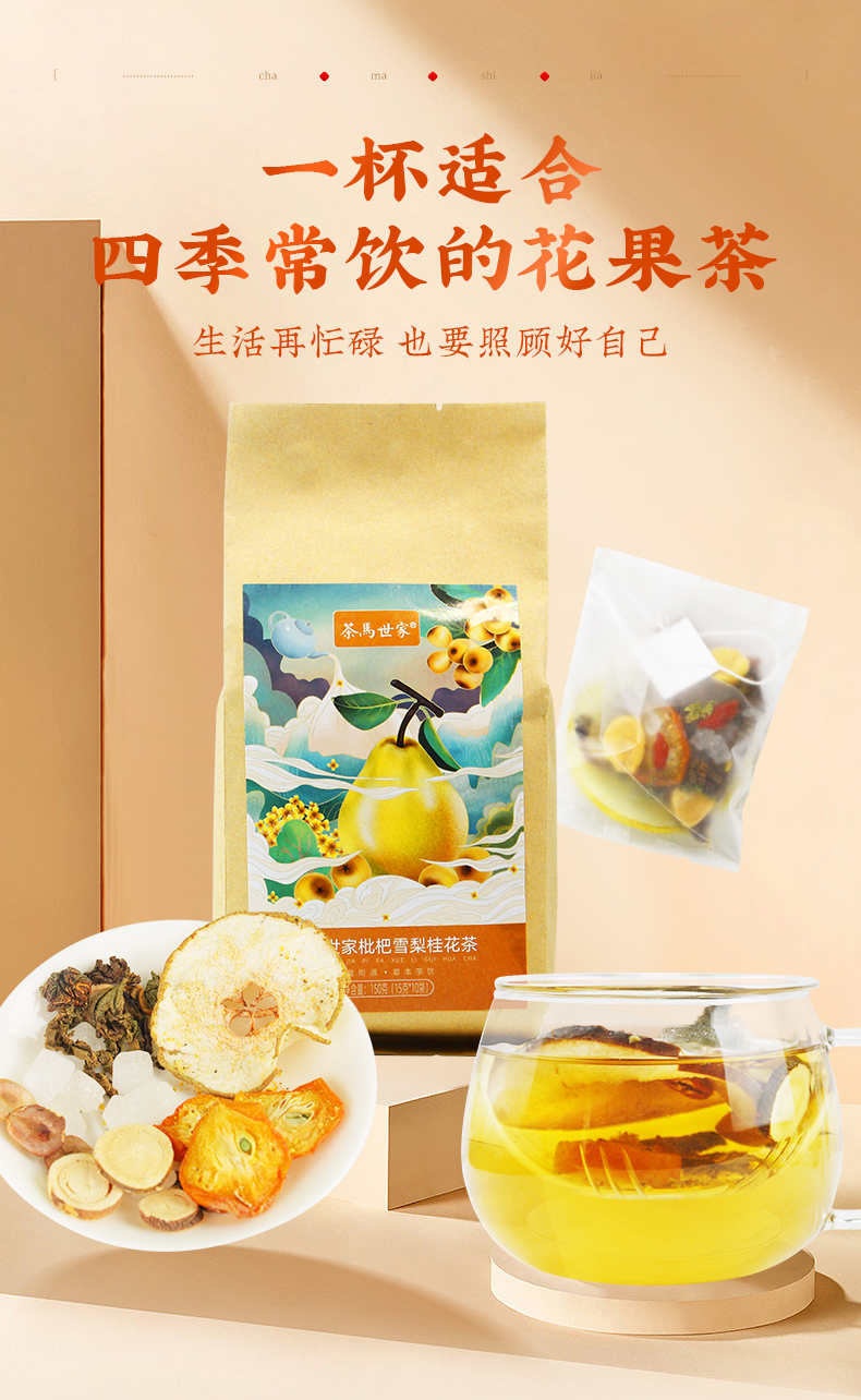 茶马世家枇杷雪梨桂花茶 清香甜润冰糖花果茶150g(单位:袋) 混色