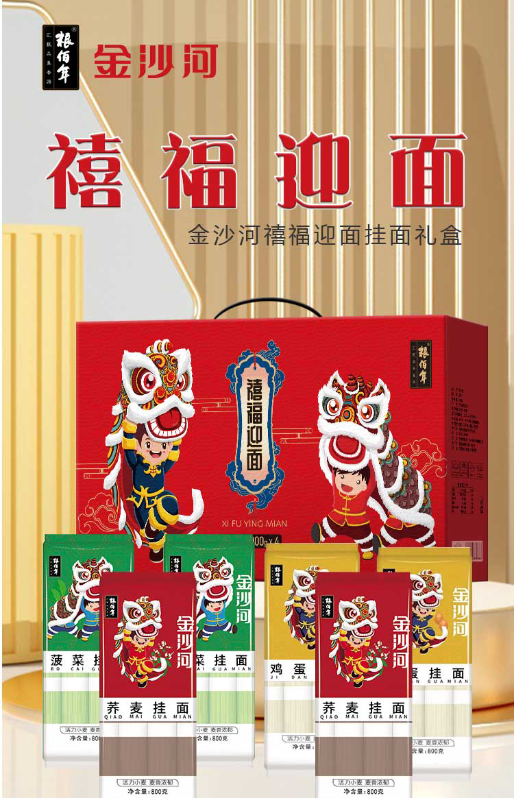 粮佰金沙河禧福迎面挂面礼盒800g*6单位:盒 莓果色