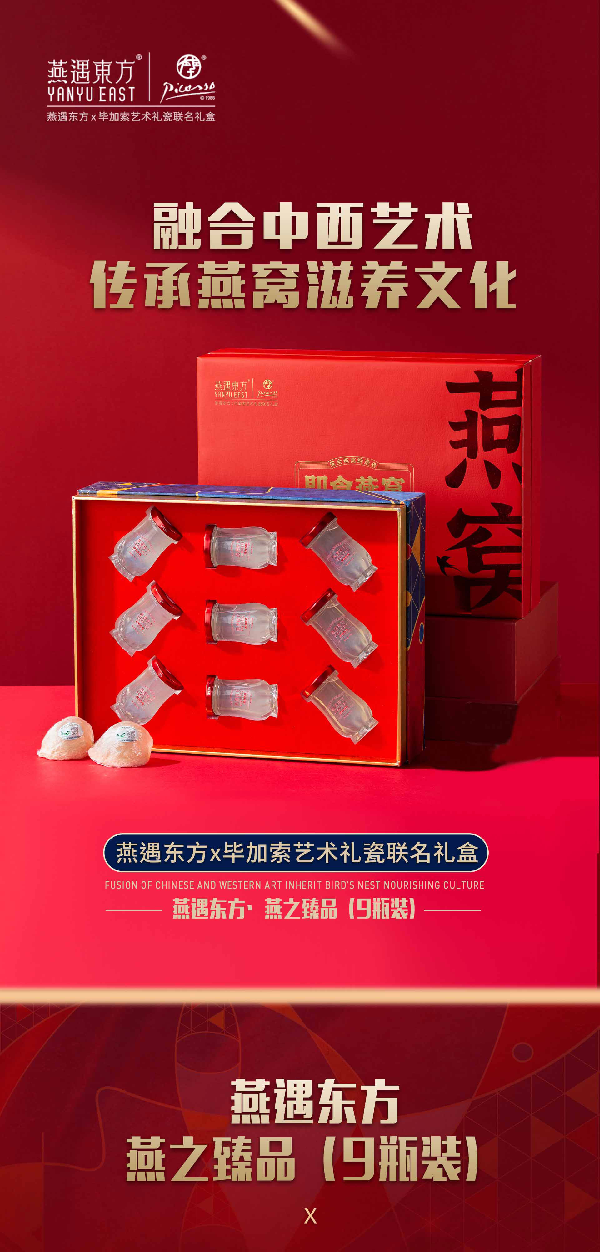 燕之臻品即食冰糖燕窝(9瓶装)50g*9瓶 单位:盒 红色