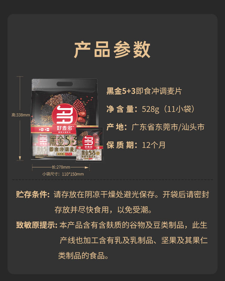 好麦多黑金5+3燕麦片528g/袋*2袋 黑色