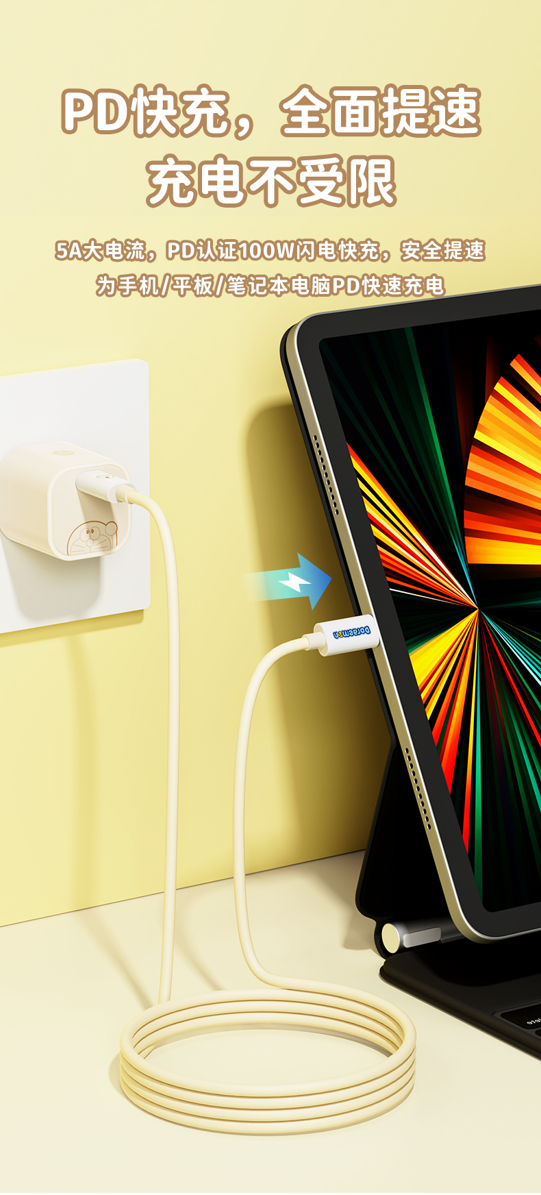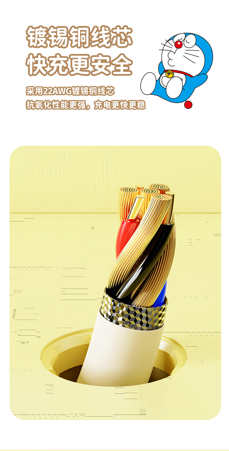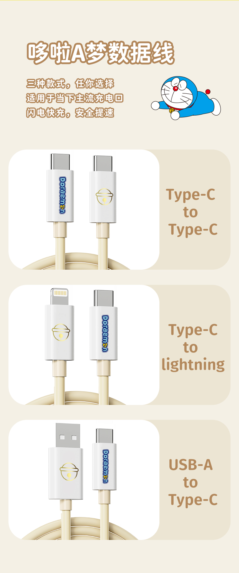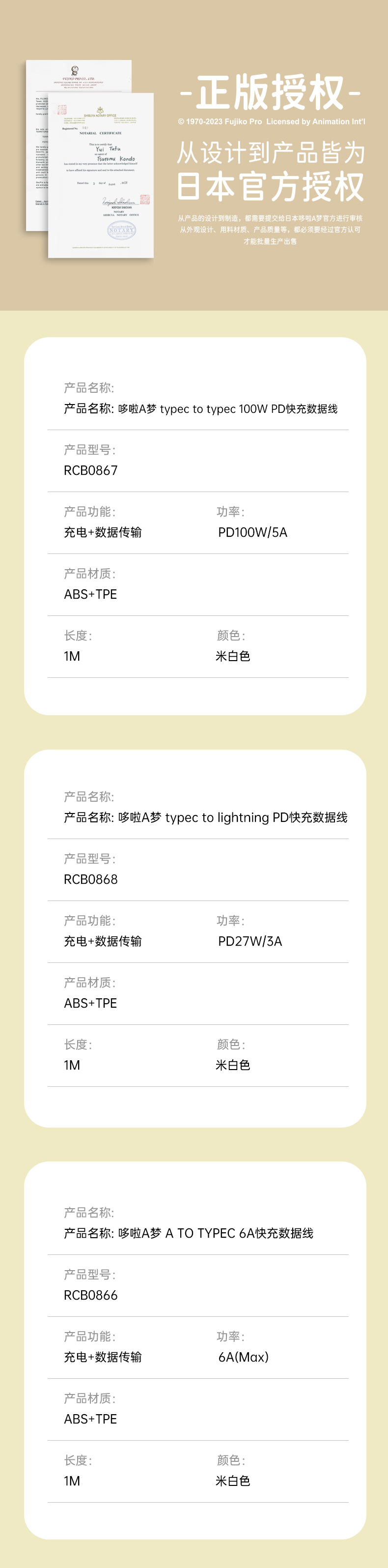 ROCK 哆啦A梦 PD100W/6A快充数据线 L=100CM RCB0866 米色 单位:条 CTO L 27W 1M