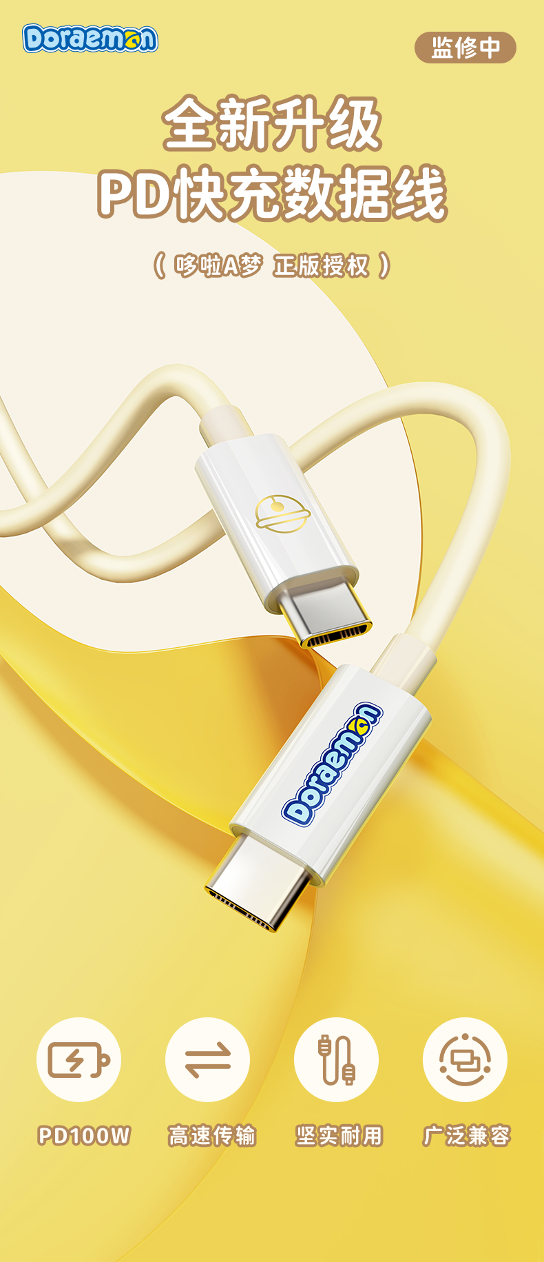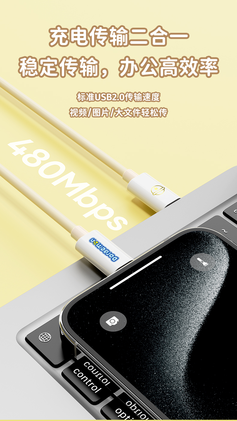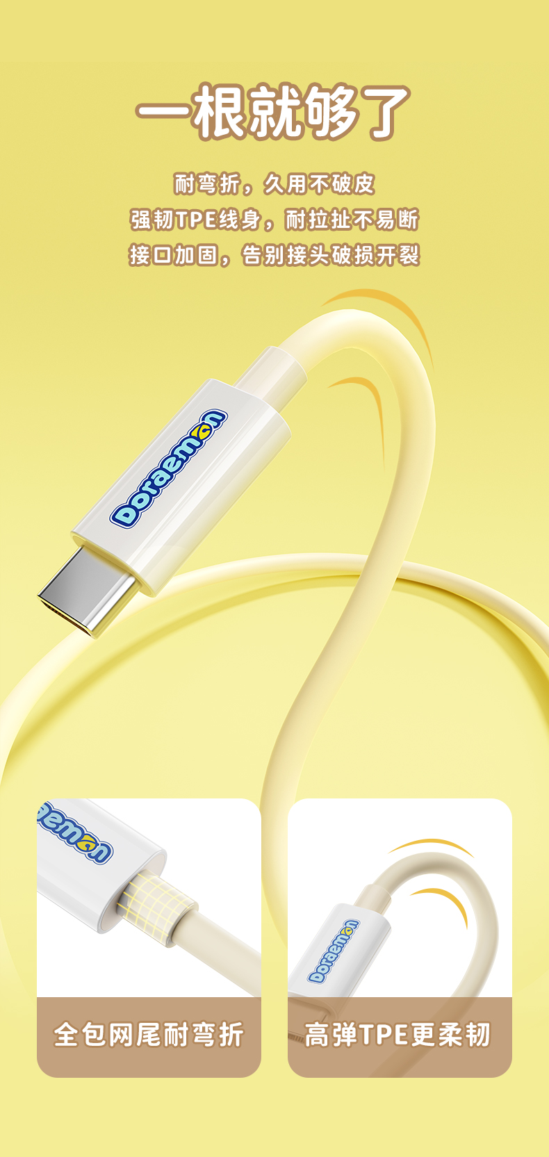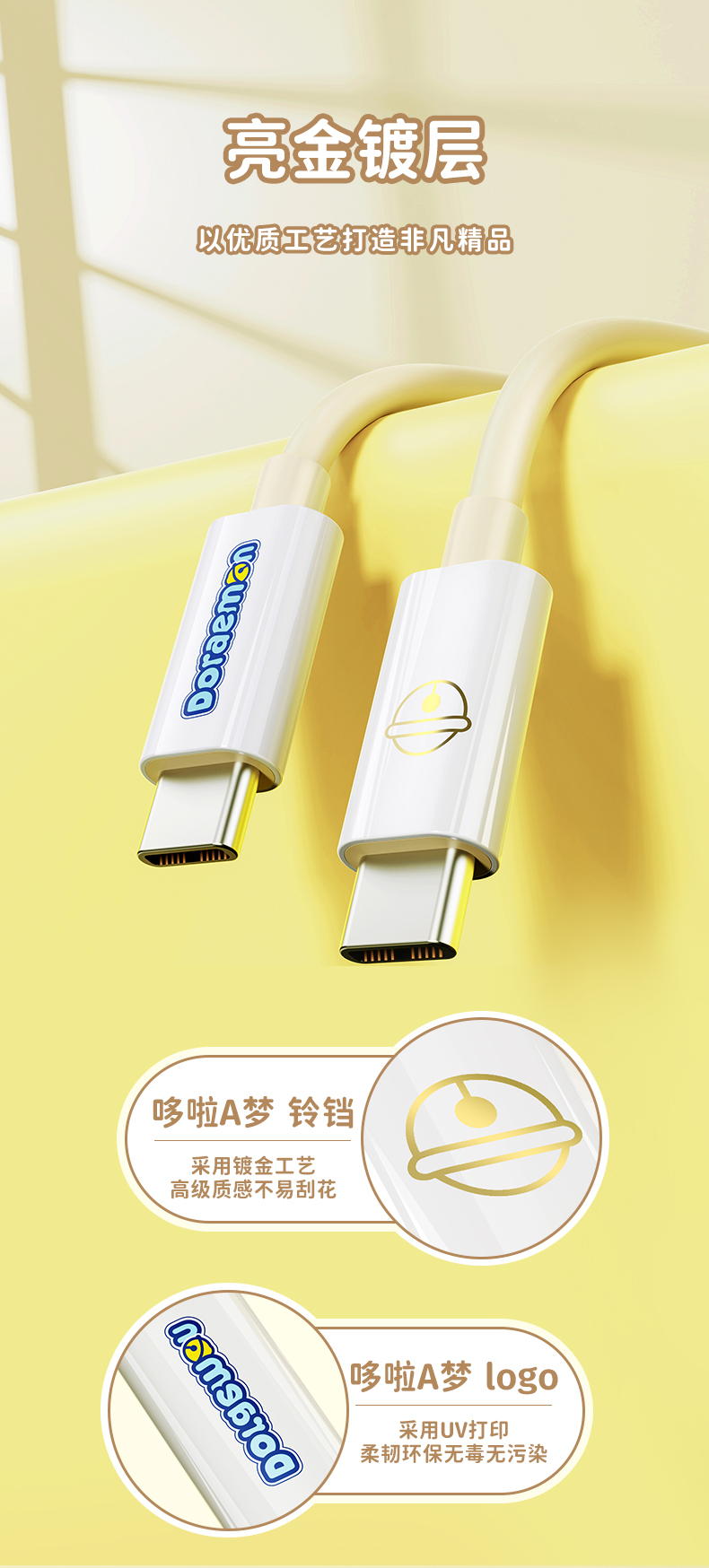 ROCK 哆啦A梦 PD100W/6A快充数据线 L=100CM RCB0866 米色 单位:条 CTO L 27W 1M