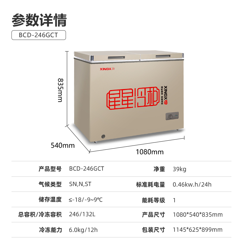 星星(XINGX)双温铜管冷柜 BCD-246GCT(单位:台) 流光金