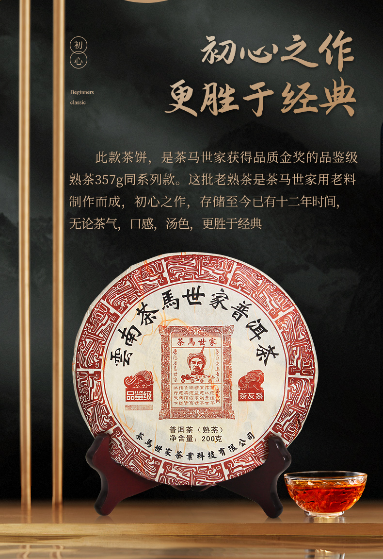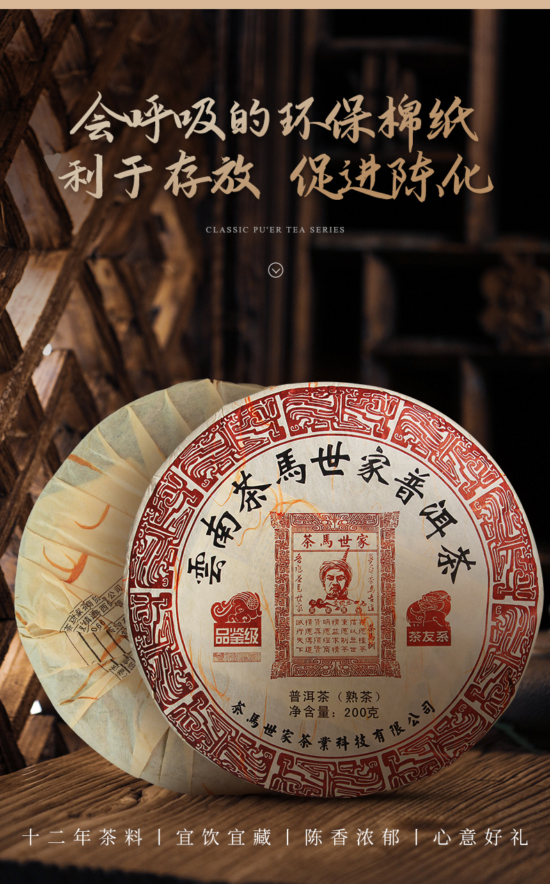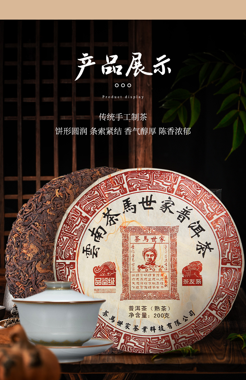 茶马世家 云南品鉴级普洱熟茶 PT200C2 200g/饼 枫叶色(单位:饼)