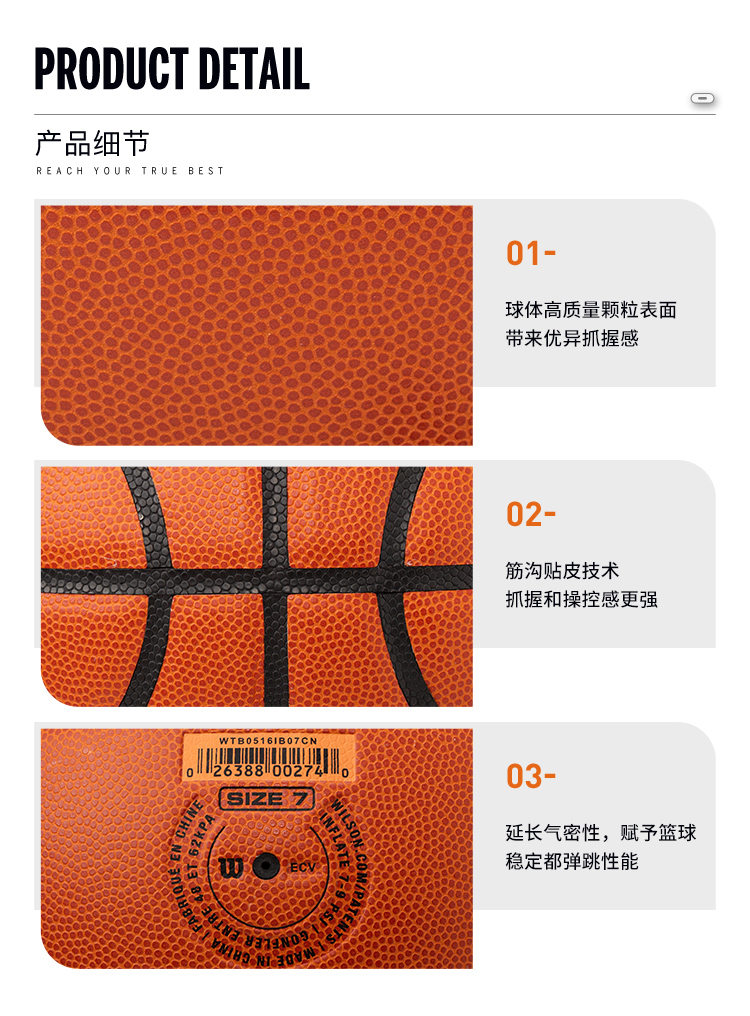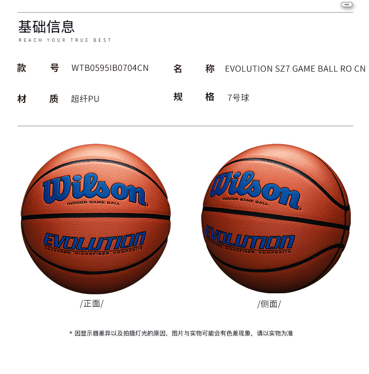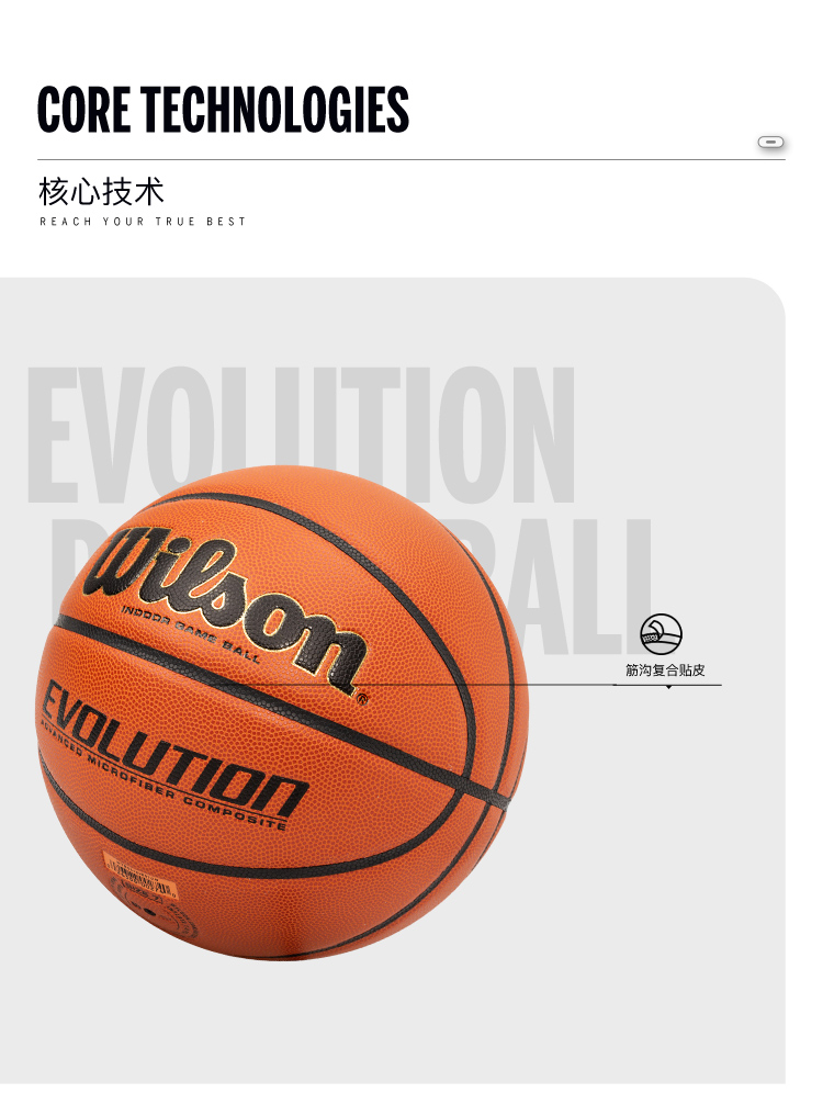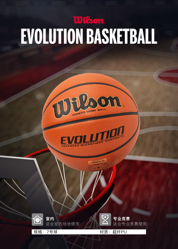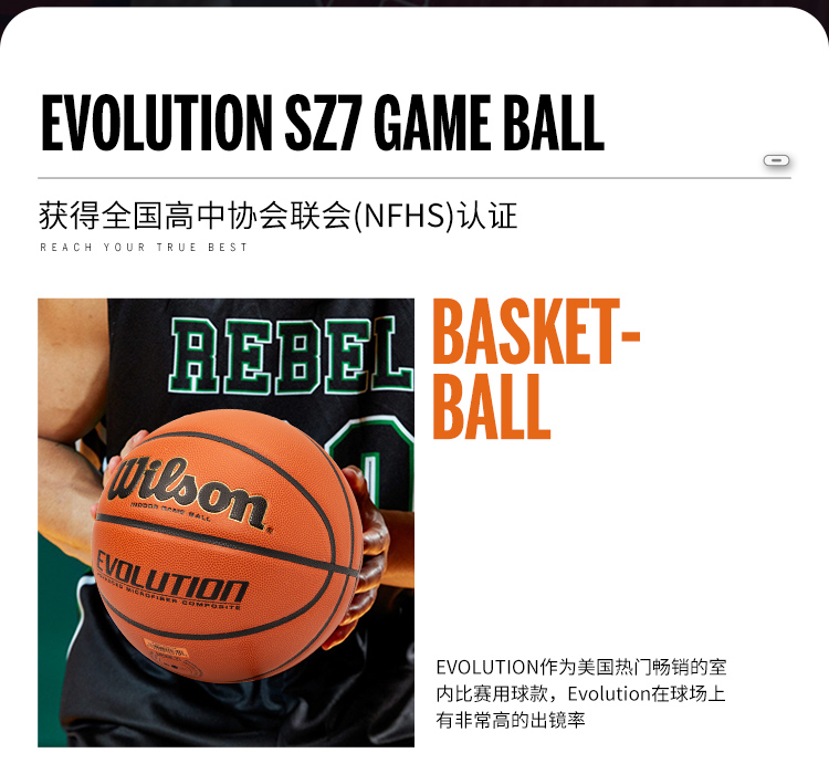 威尔胜Wilson 2020款Evolution全美高中比赛用球7号篮球 WTB0516IB07CN 橙色