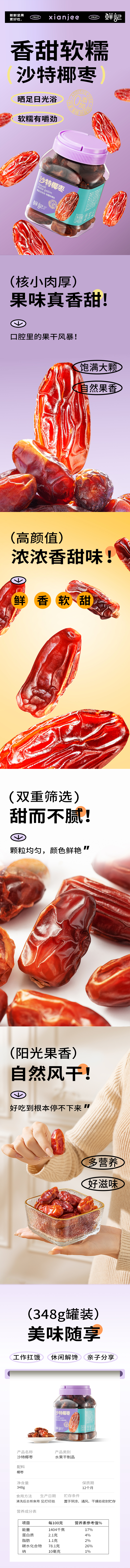 鲜记 沙特椰枣 348g 香甜软糯有嚼劲 混色(单位:罐)