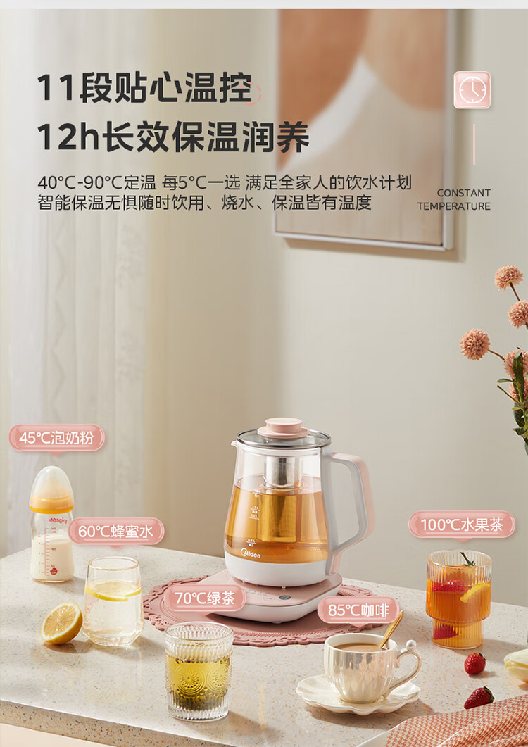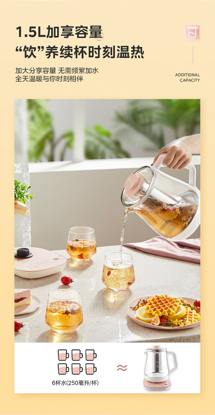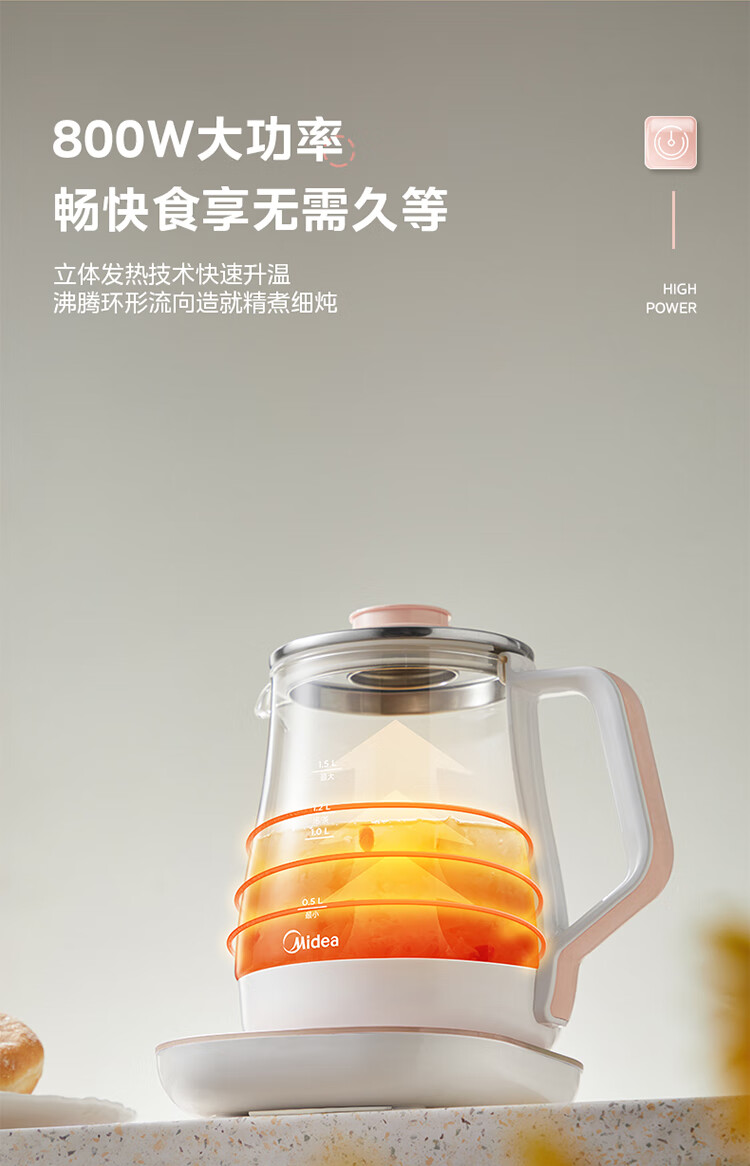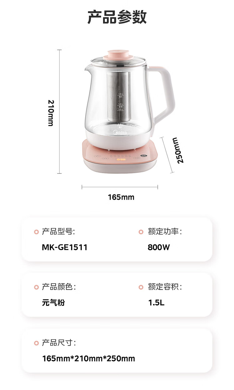 美的(Midea)家用1.5L养生壶 MK-GE1511(单位:台) 小橙粉