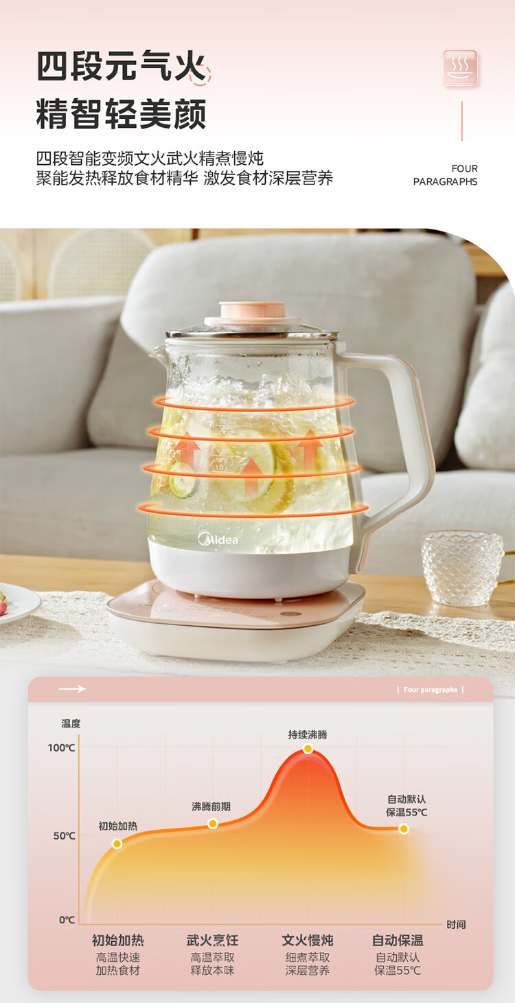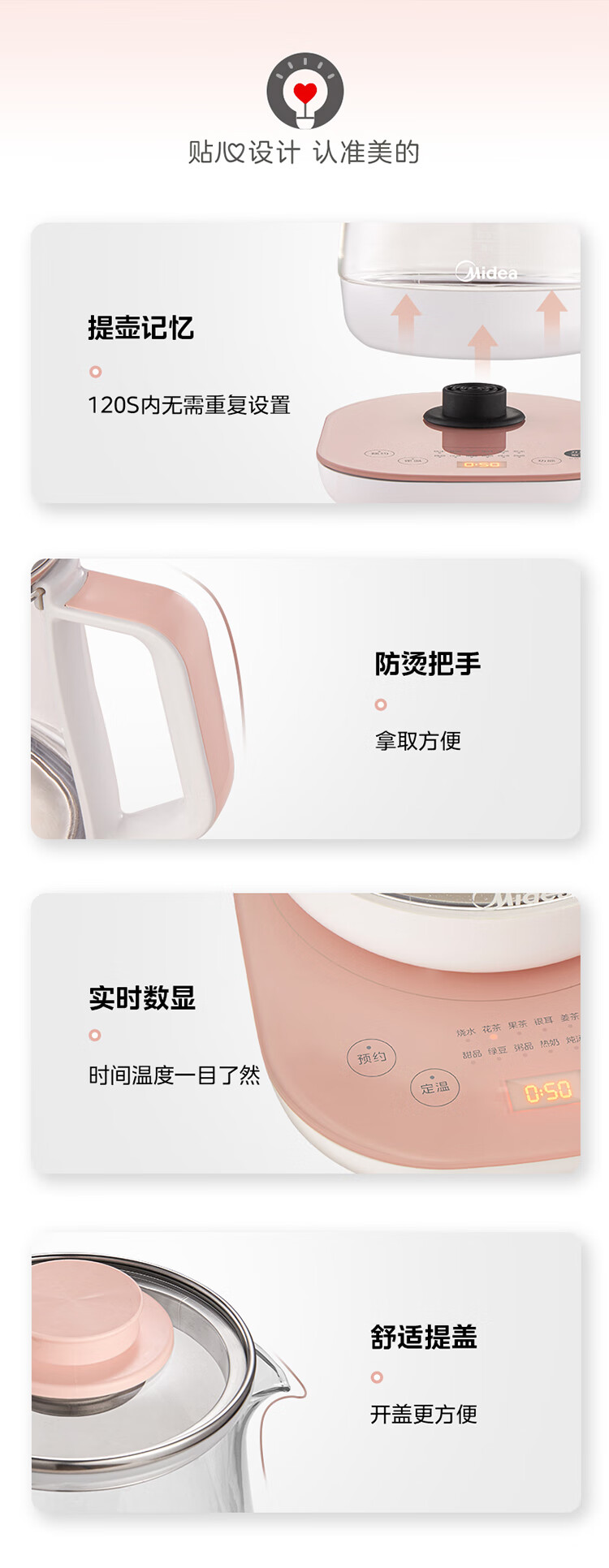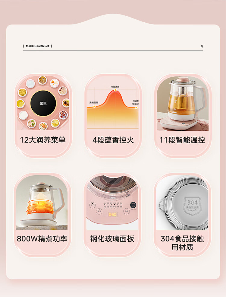 美的(Midea)家用1.5L养生壶 MK-GE1511(单位:台) 小橙粉