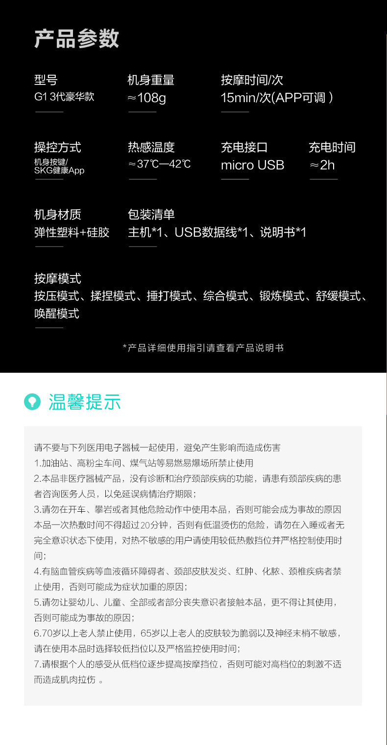 SKG 颈椎按摩器颈部按摩仪多功能颈椎按摩仪 G1系列3代 豪华款 3档 白色(单位:个)