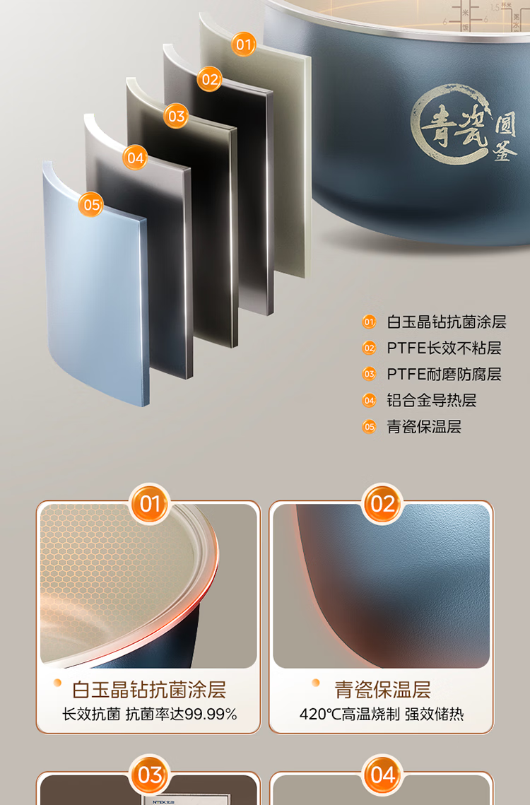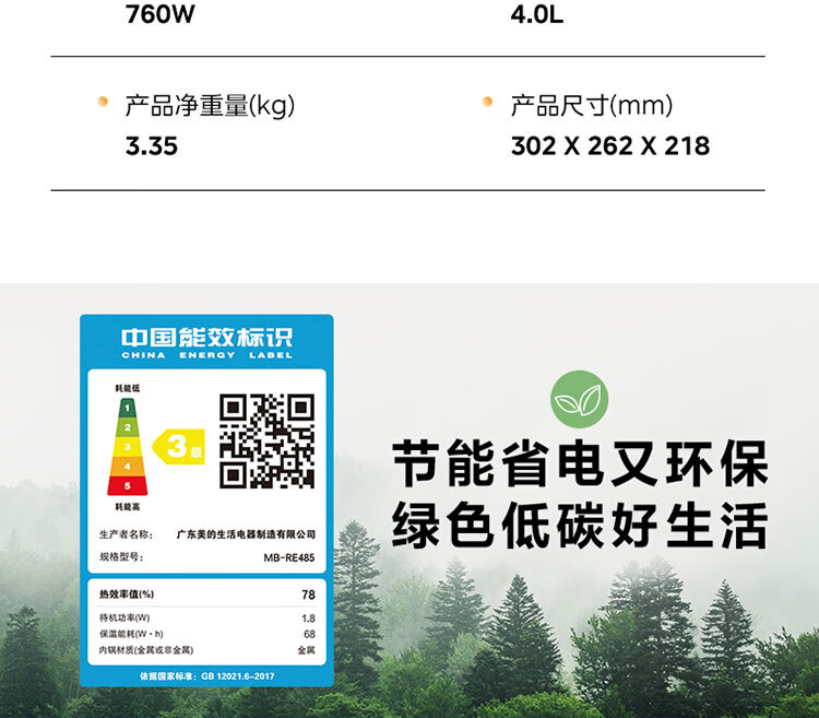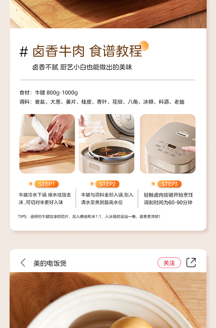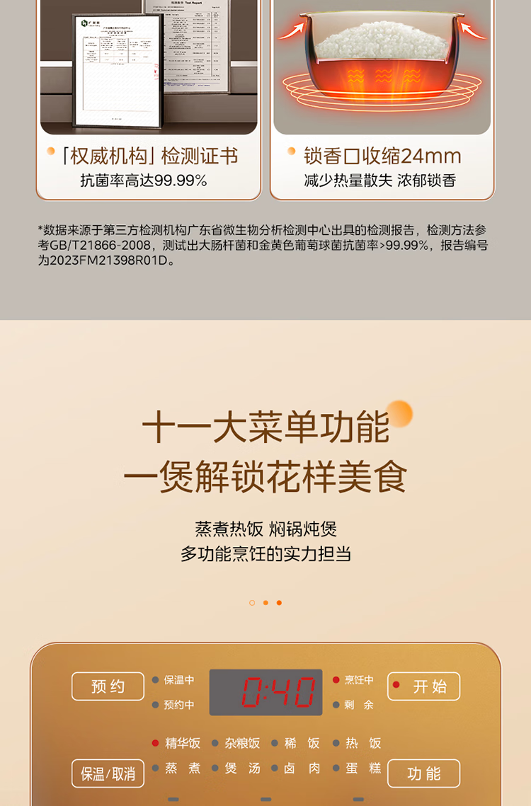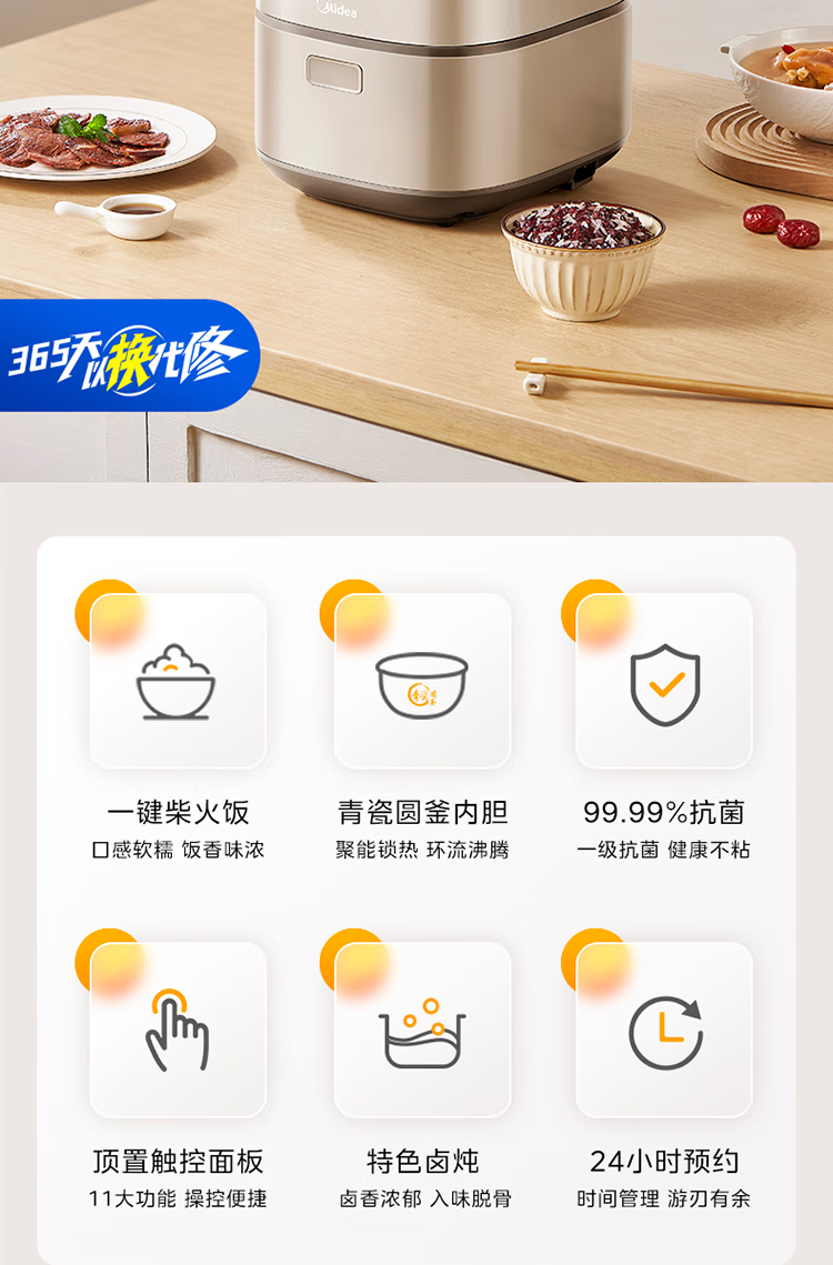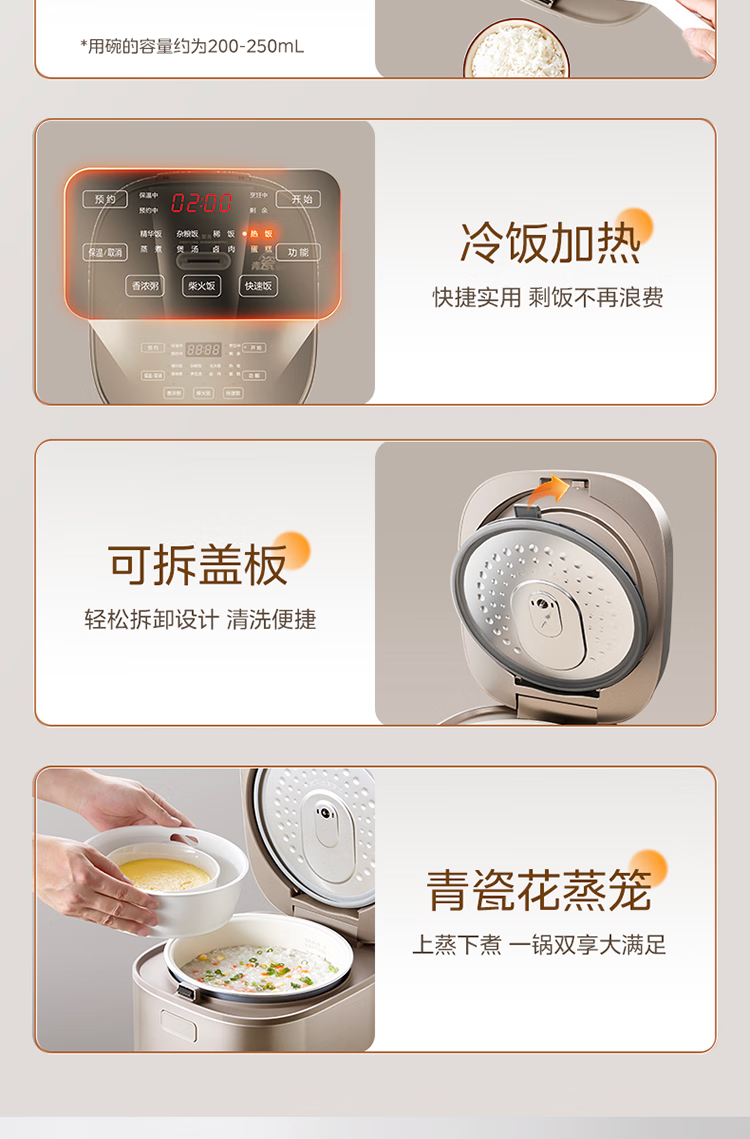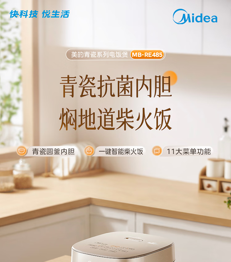 美的电饭煲 家用大容量电饭锅MB-RE485(单位:台) 金色