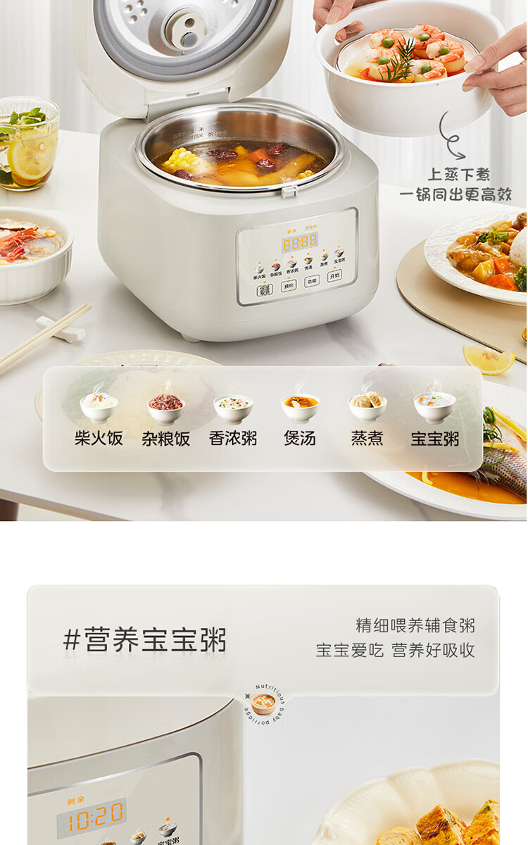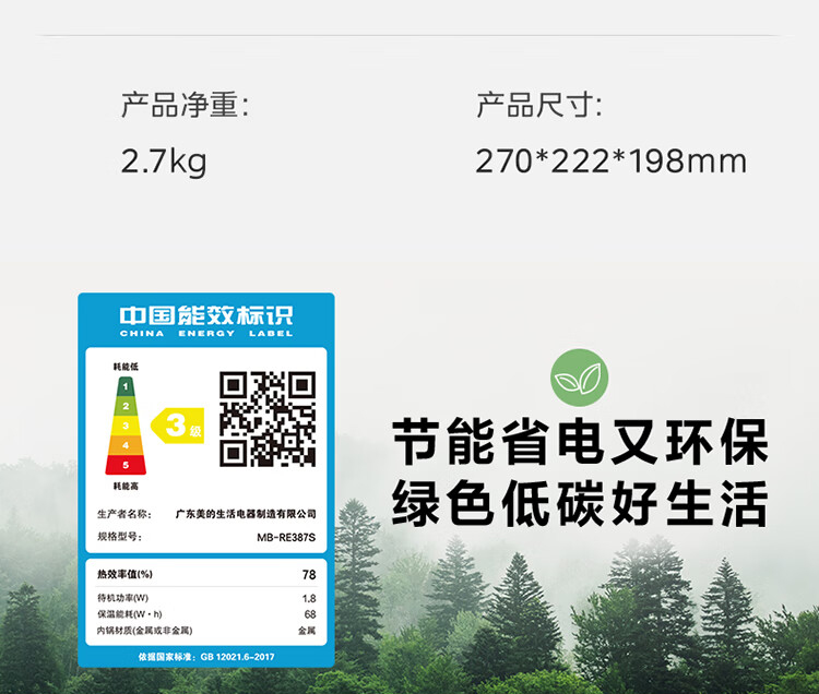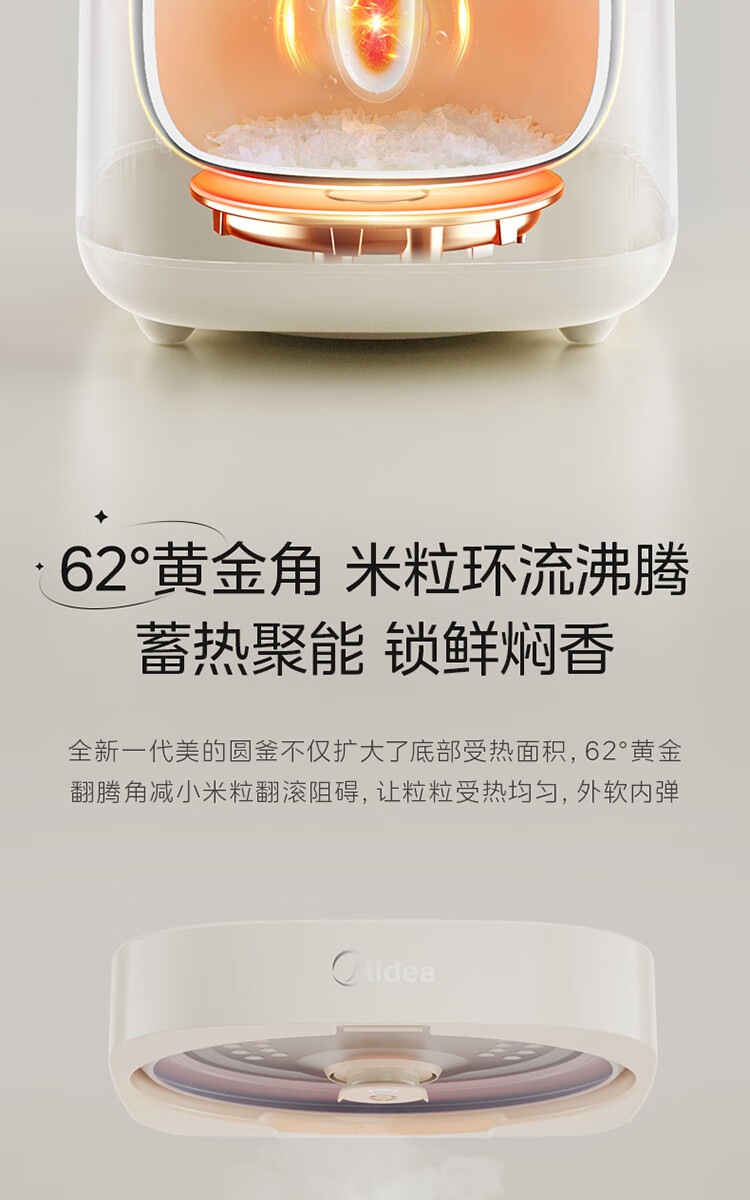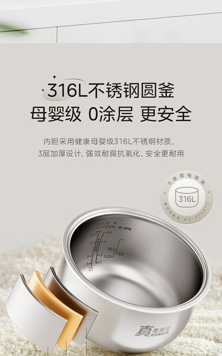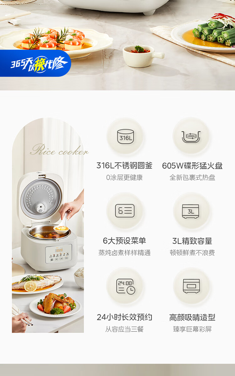 美的电饭煲 无涂层内胆电饭锅 3L MB-RE387S(单位:台) 白色