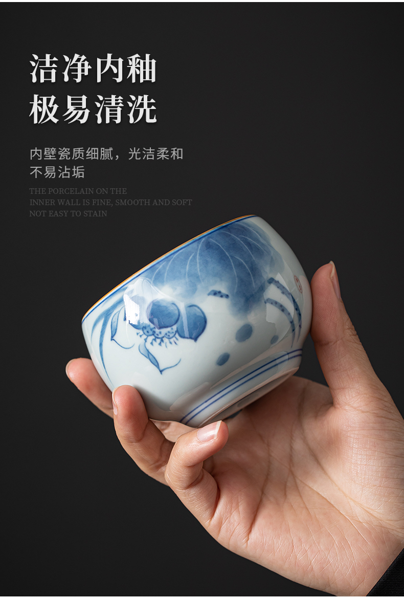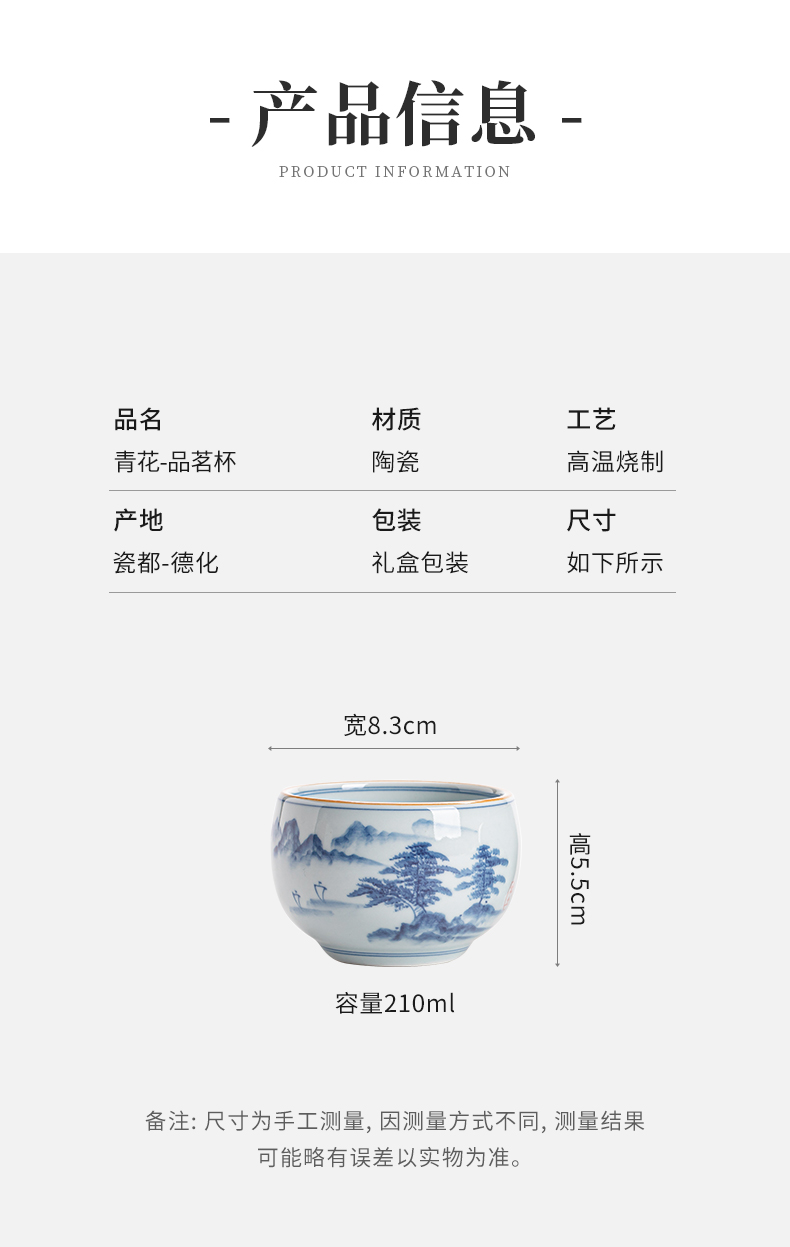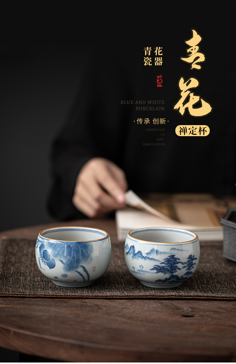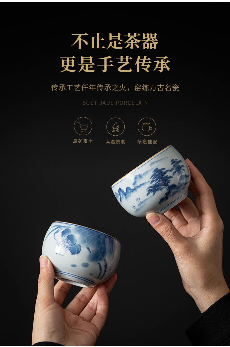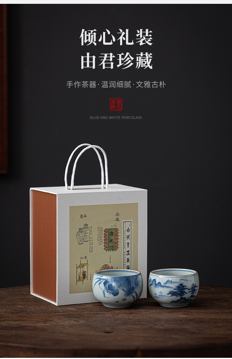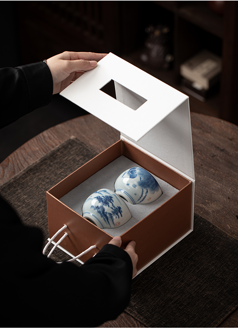 苏氏陶瓷(SUSHI CERAMICS)J0522茶杯国潮风主人杯荷花山水2个装礼盒(单位:套) 白色