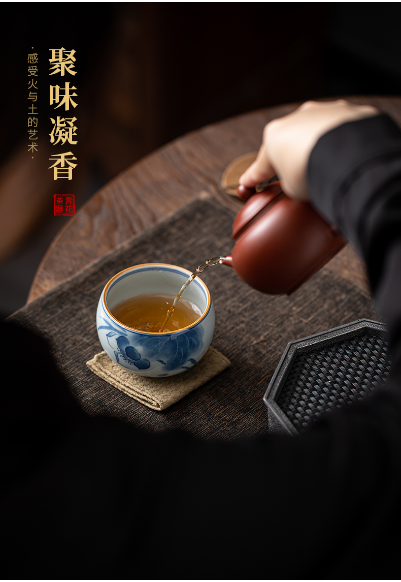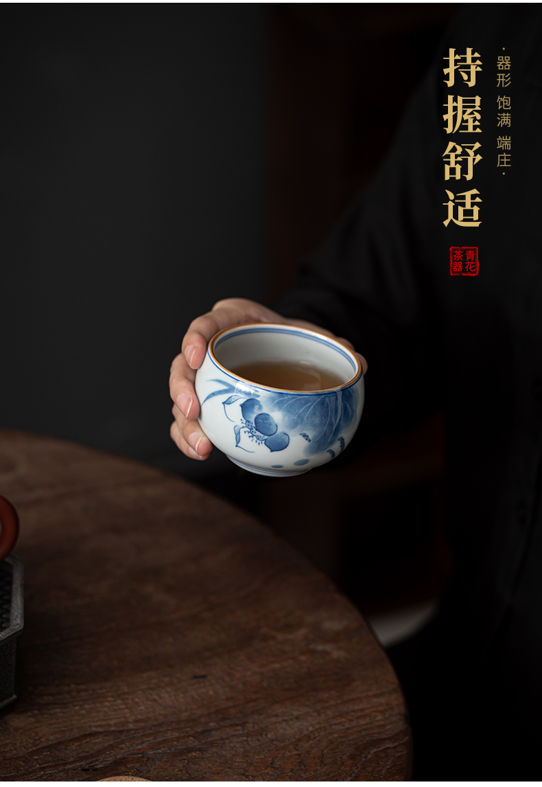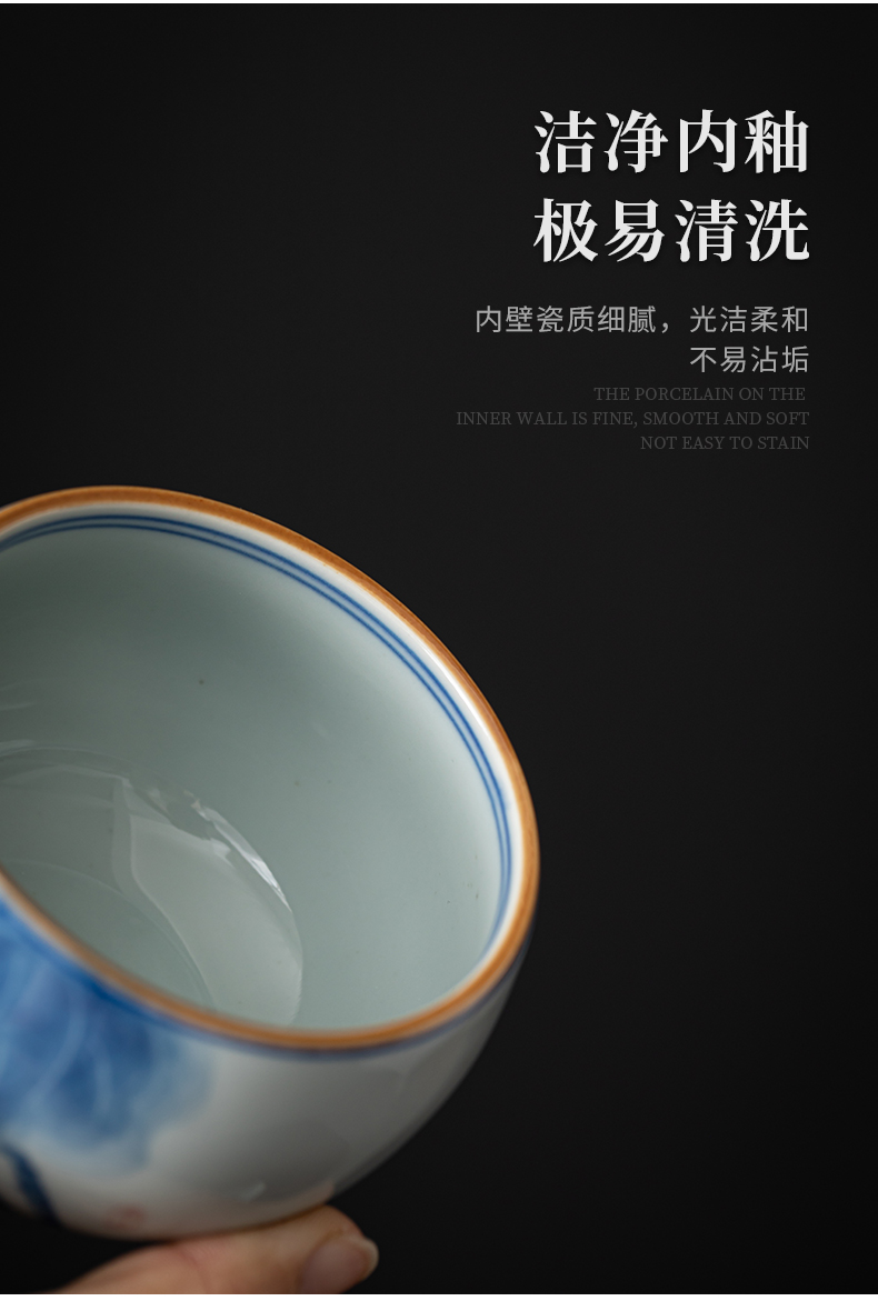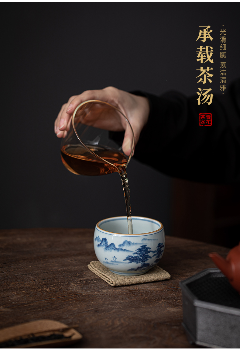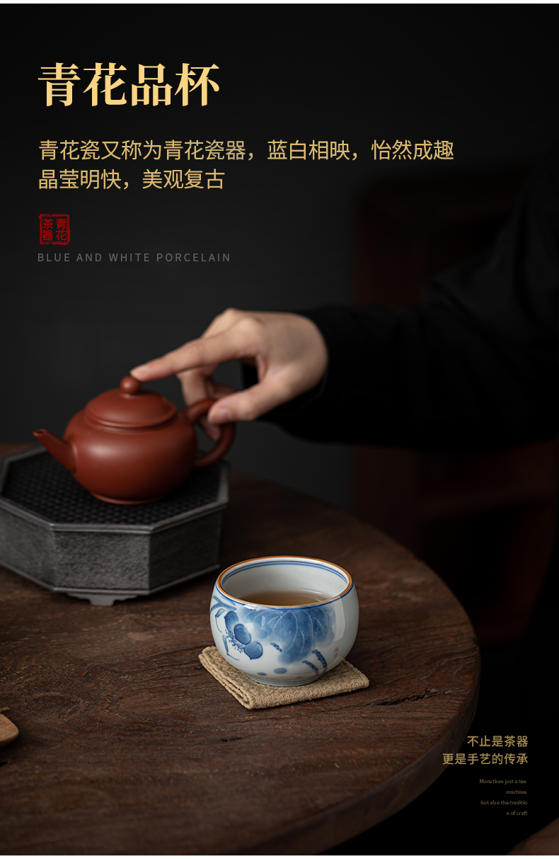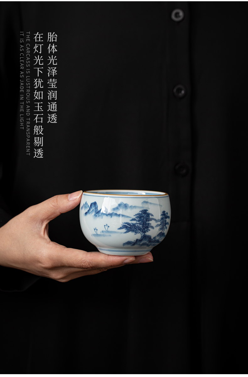 苏氏陶瓷(SUSHI CERAMICS)J0522茶杯国潮风主人杯荷花山水2个装礼盒(单位:套) 白色