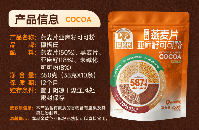 穗格氏 燕麦片亚麻籽可可粉350克(35克×10条)(单位:袋) 绿色