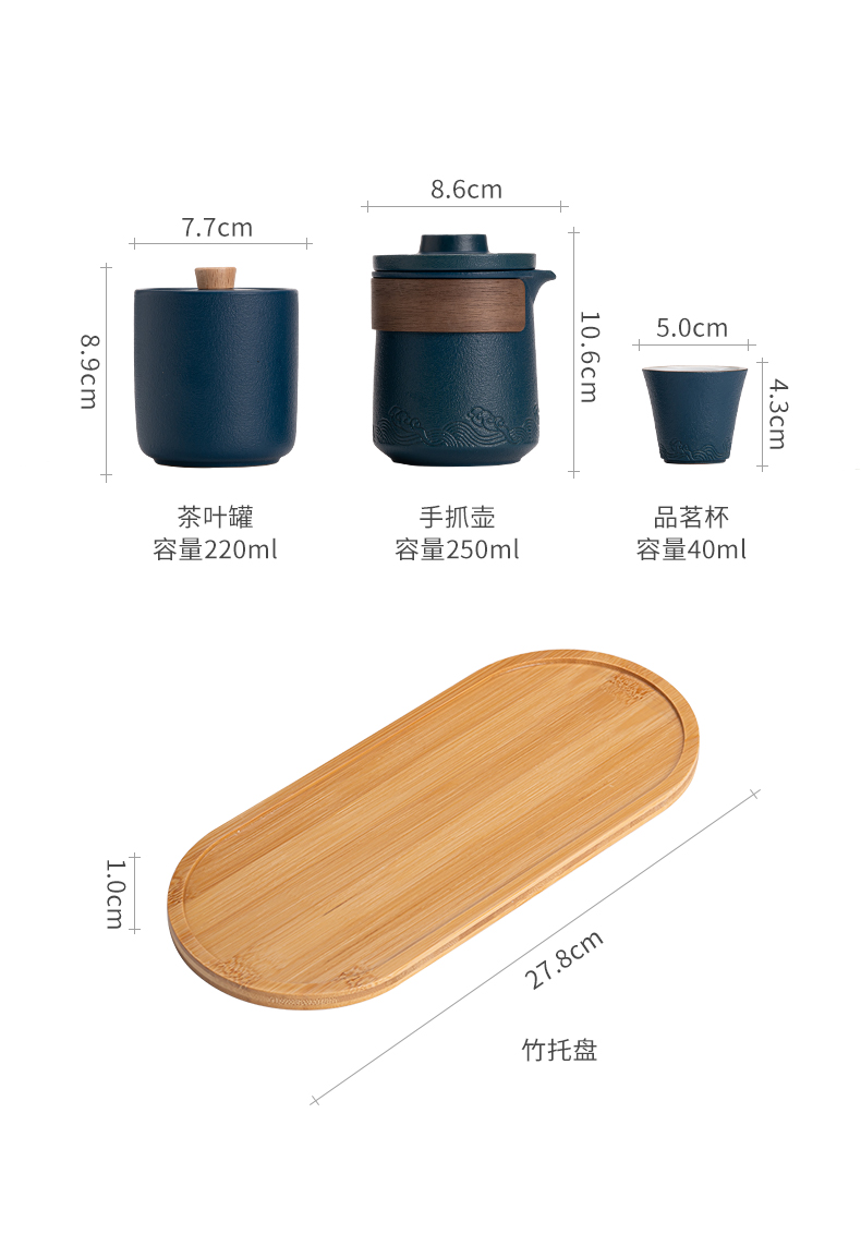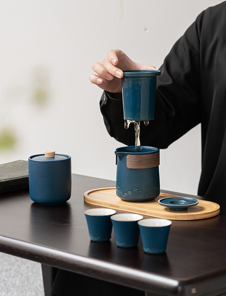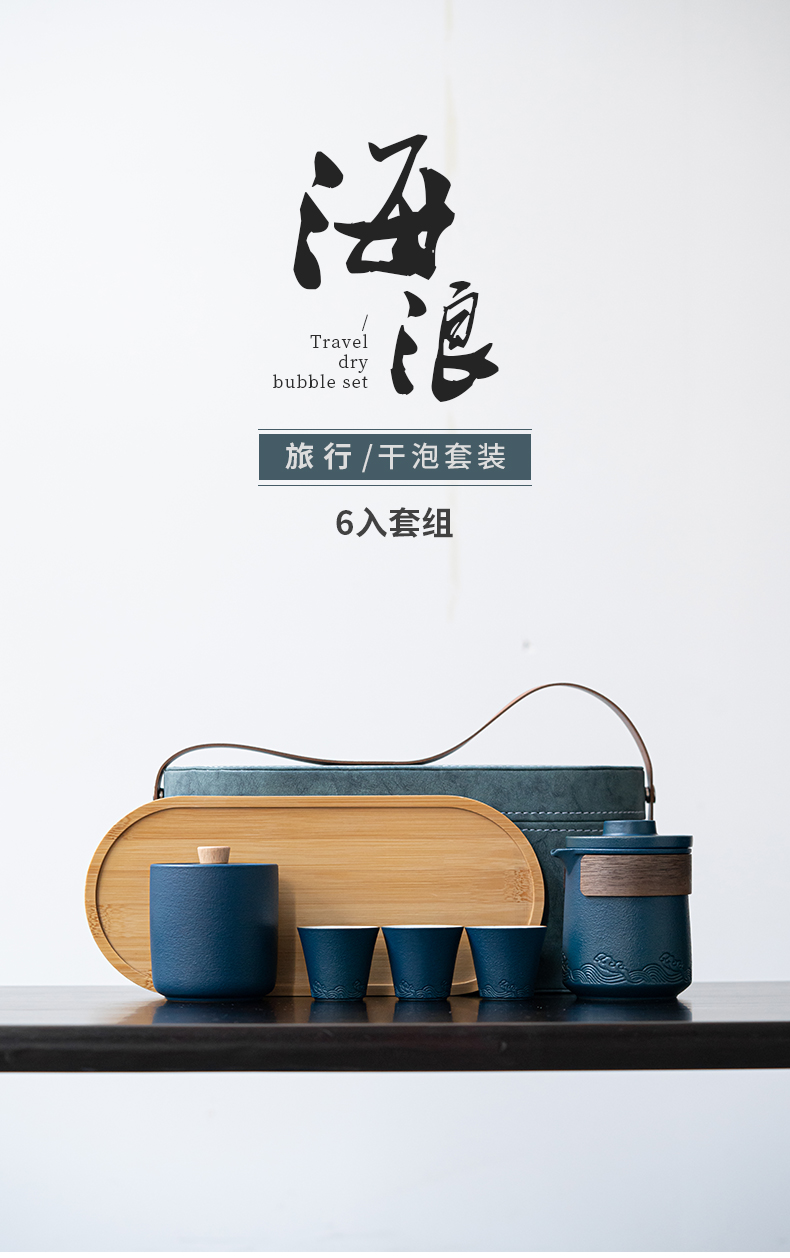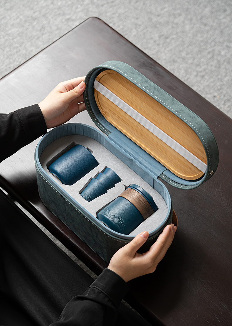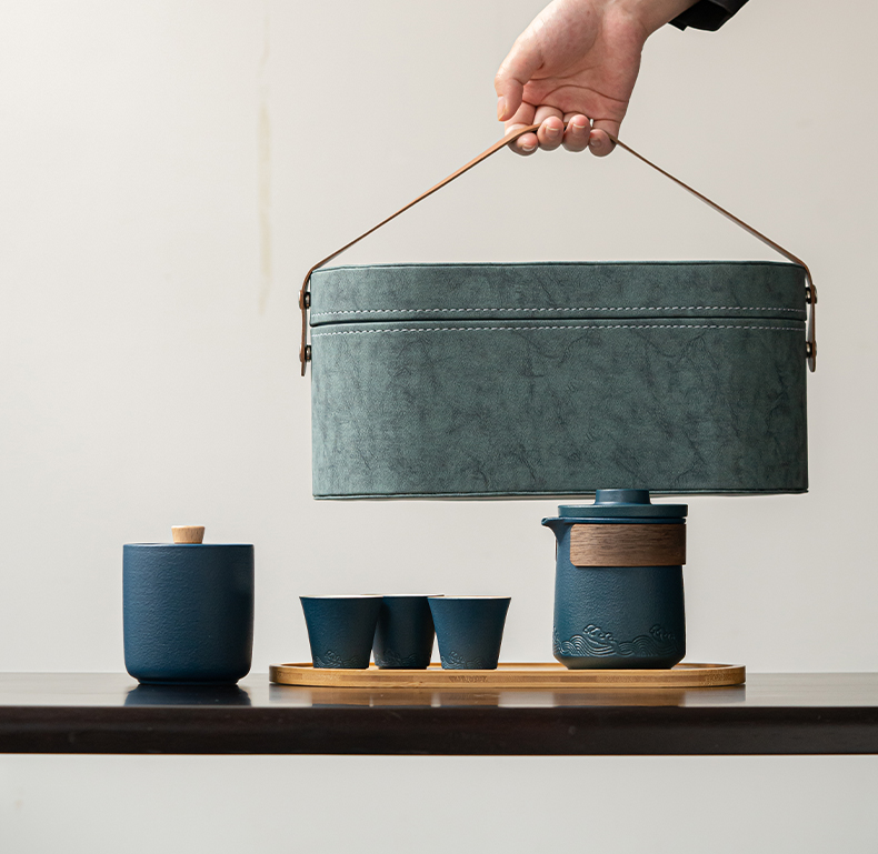 苏氏陶瓷(SUSHI CERAMICS)J0626旅行茶具山水快客杯便携包(蓝)(单位:套) 宝石蓝