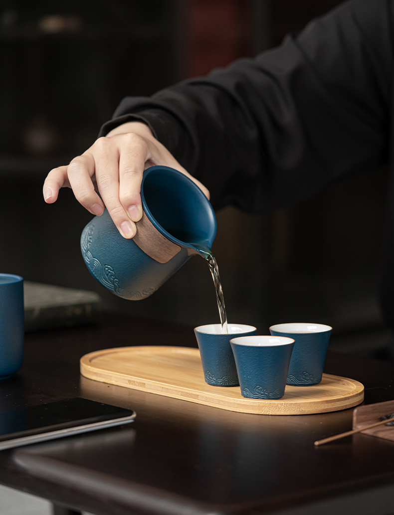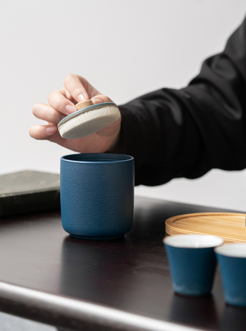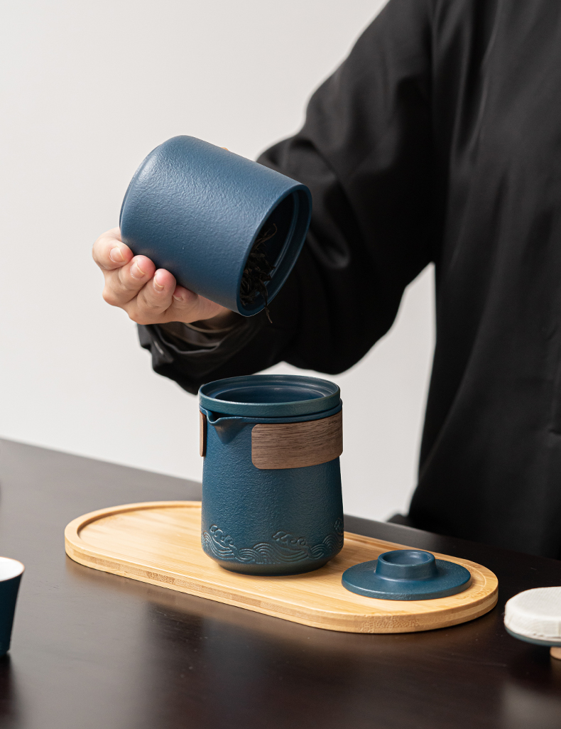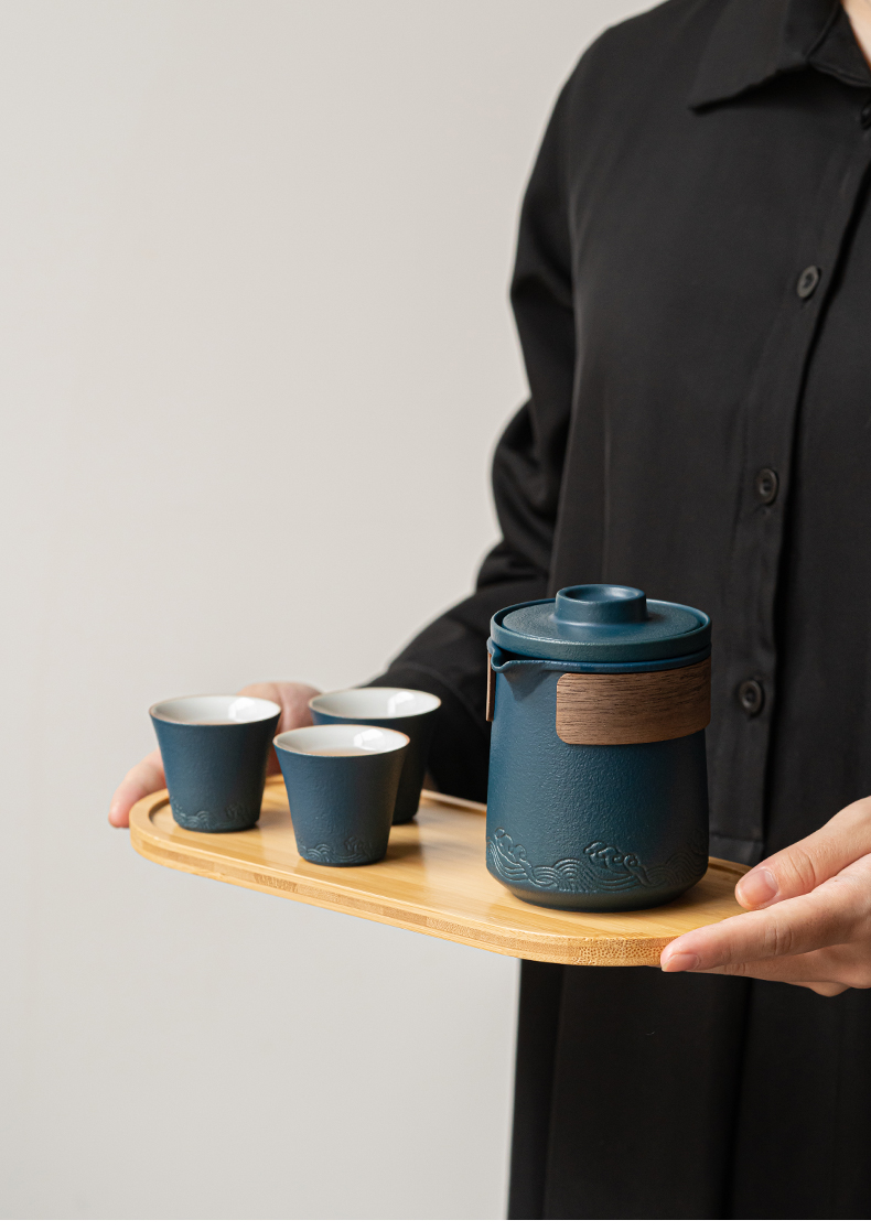 苏氏陶瓷(SUSHI CERAMICS)J0626旅行茶具山水快客杯便携包(蓝)(单位:套) 宝石蓝