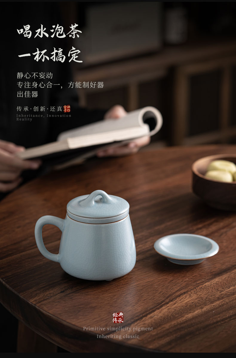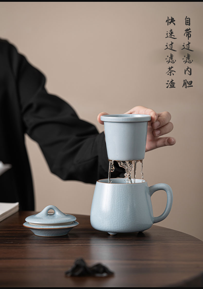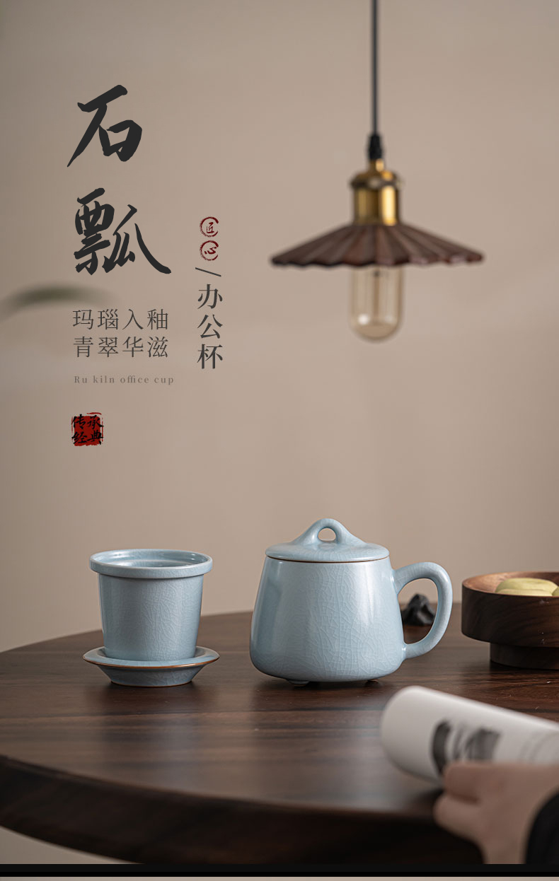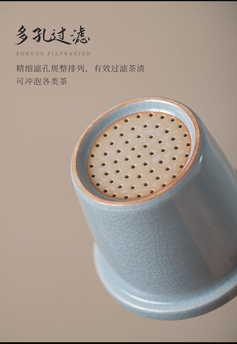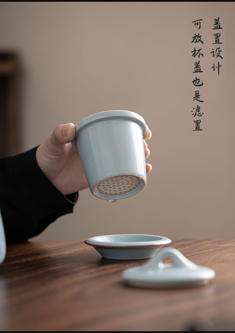 苏氏陶瓷(SUSHI CERAMICS)Y8办公杯汝窑带盖带过滤泡茶杯(单位:个) 水蓝色