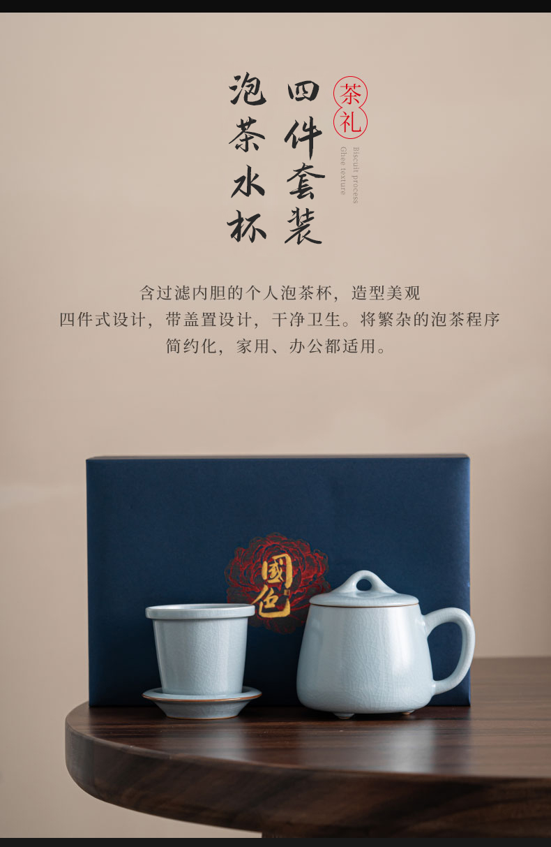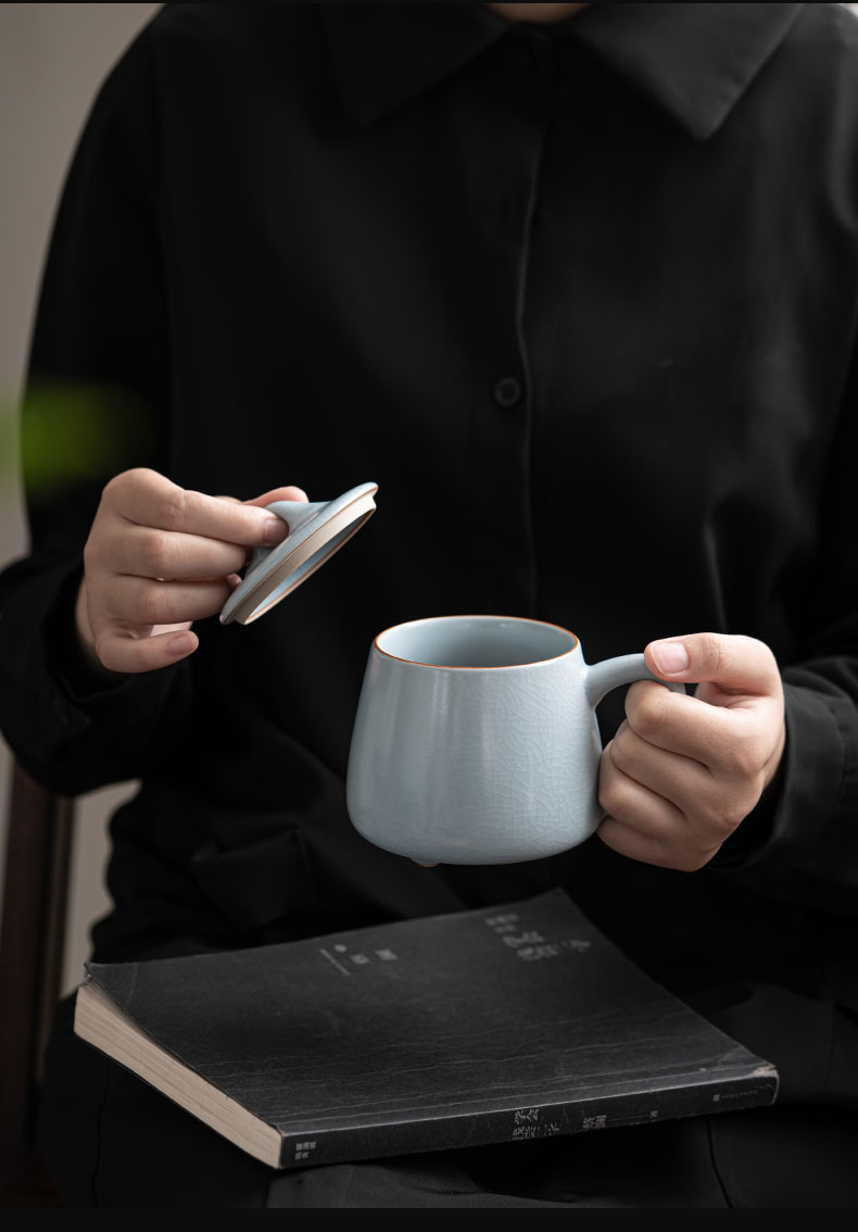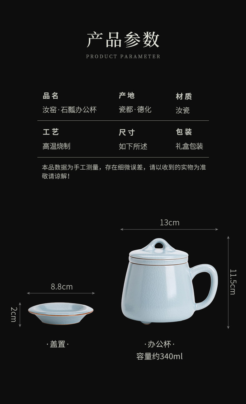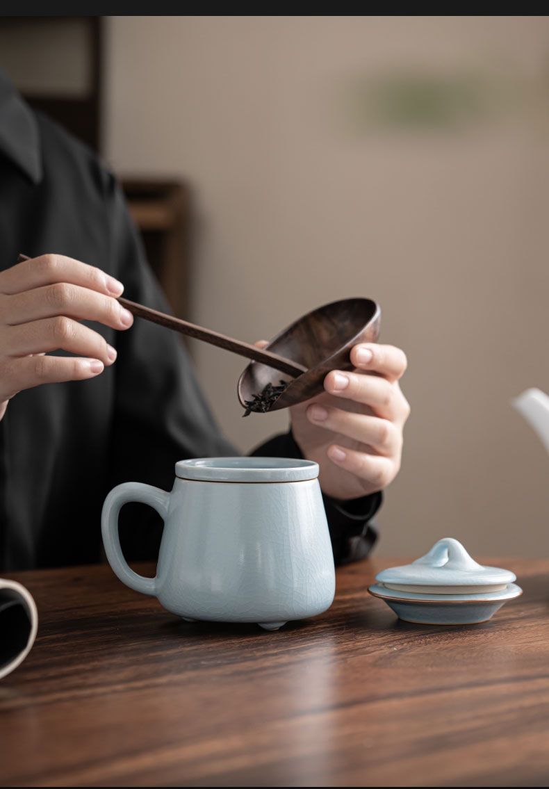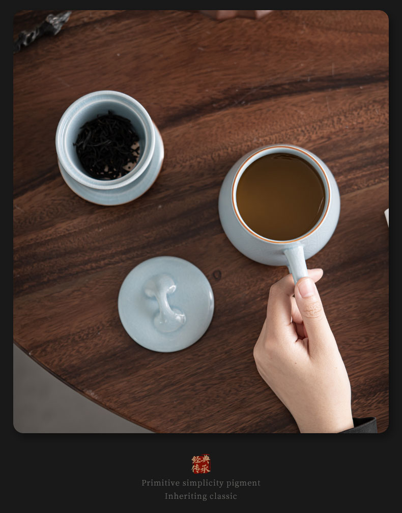 苏氏陶瓷(SUSHI CERAMICS)Y8办公杯汝窑带盖带过滤泡茶杯(单位:个) 水蓝色