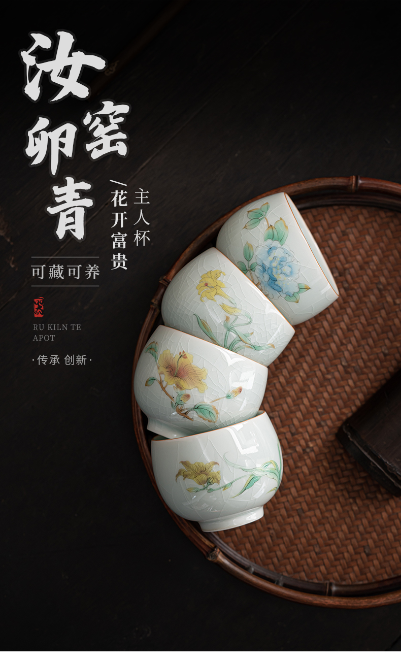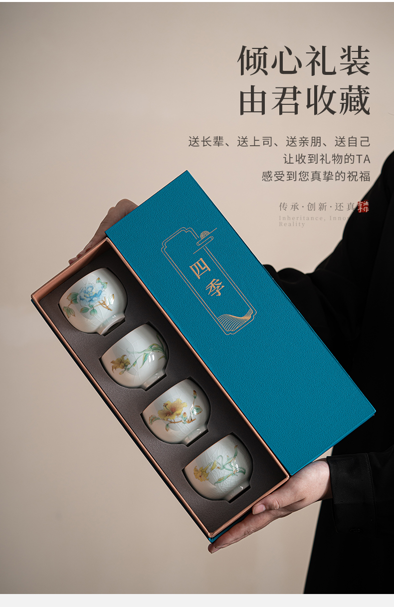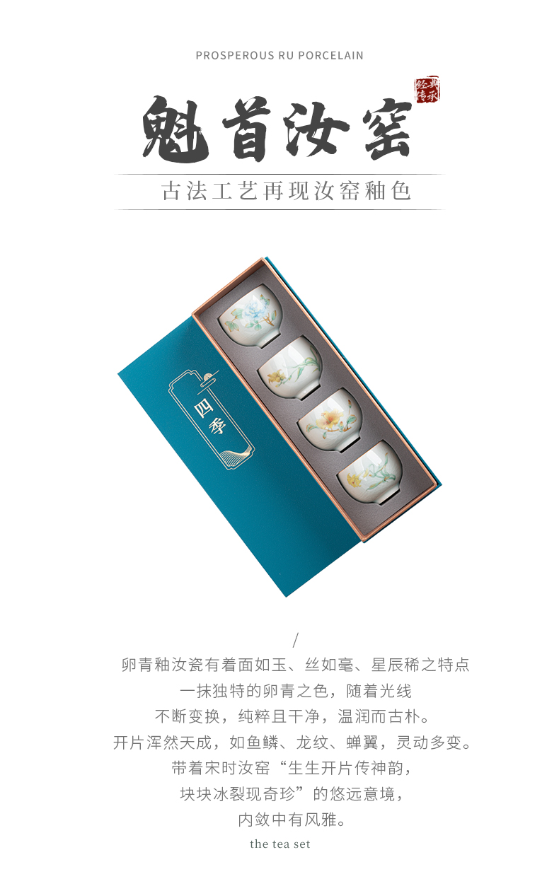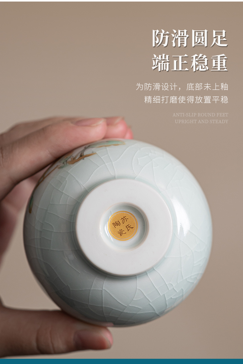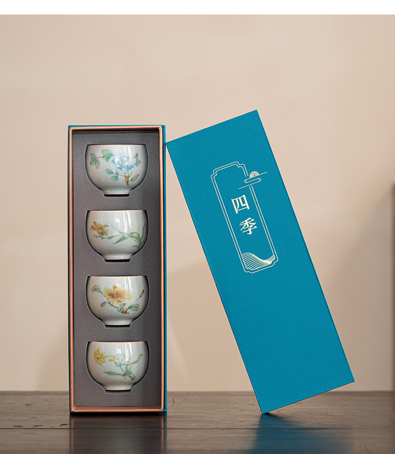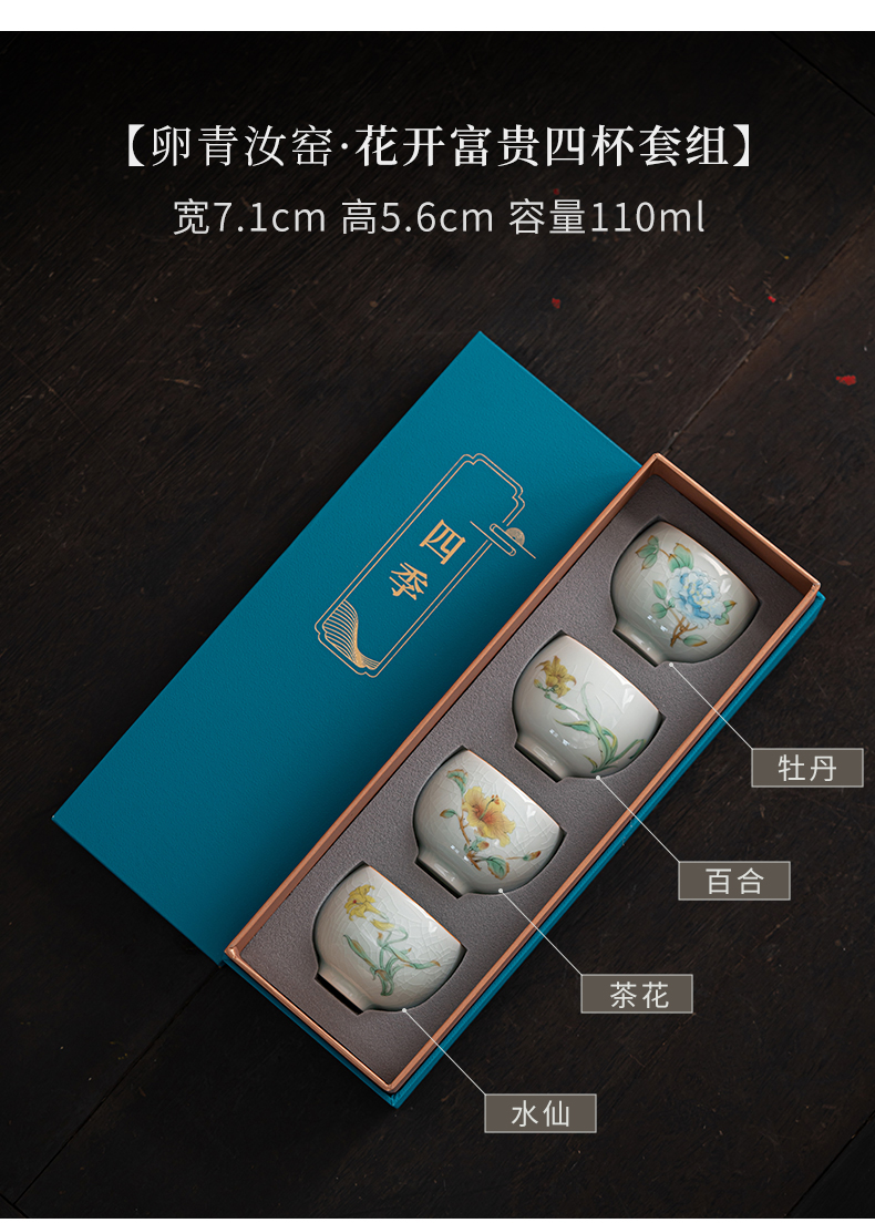 苏氏陶瓷(SUSHI CERAMICS)J0681茶杯汝窑卵青四季平安主人杯4个装(单位:套)