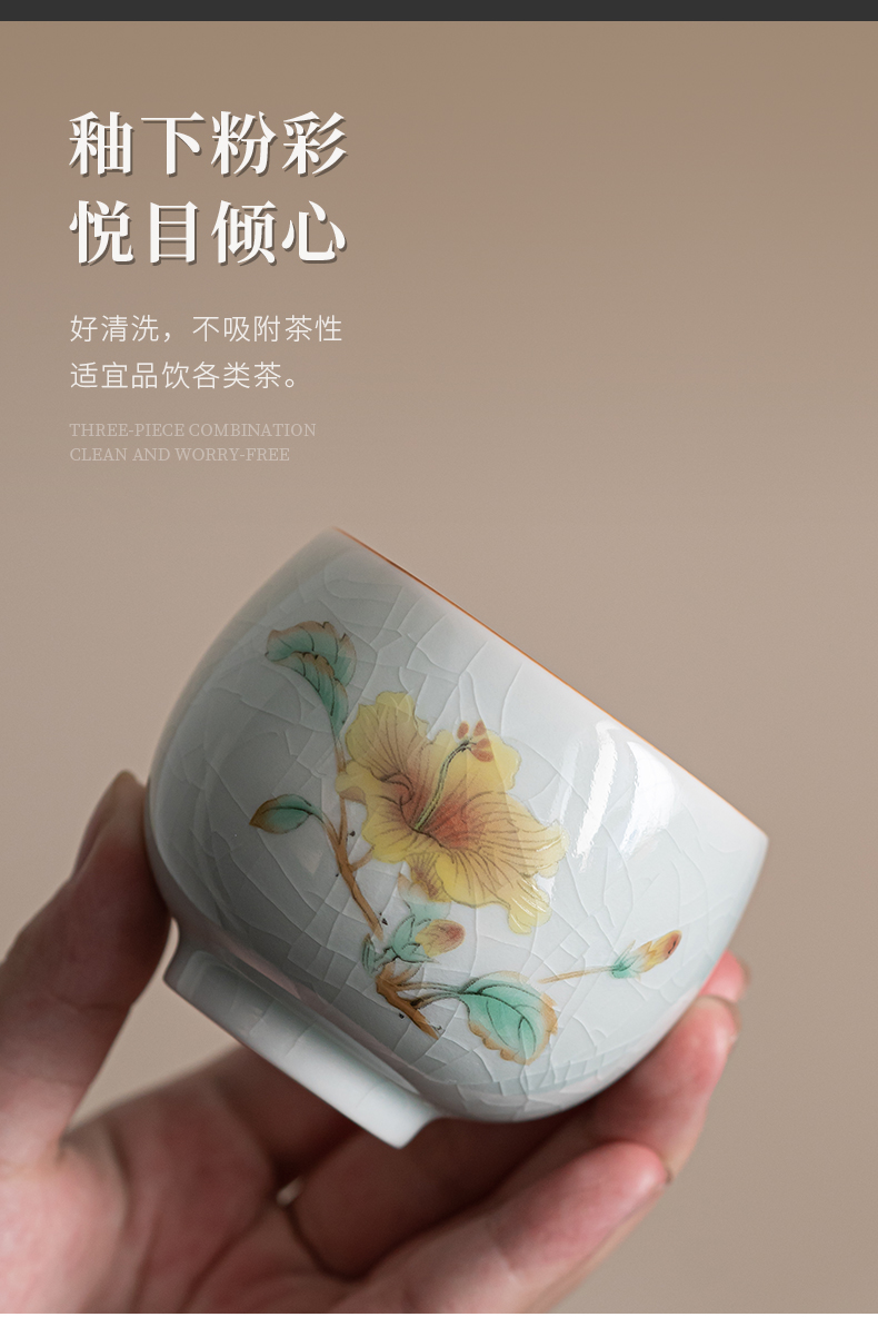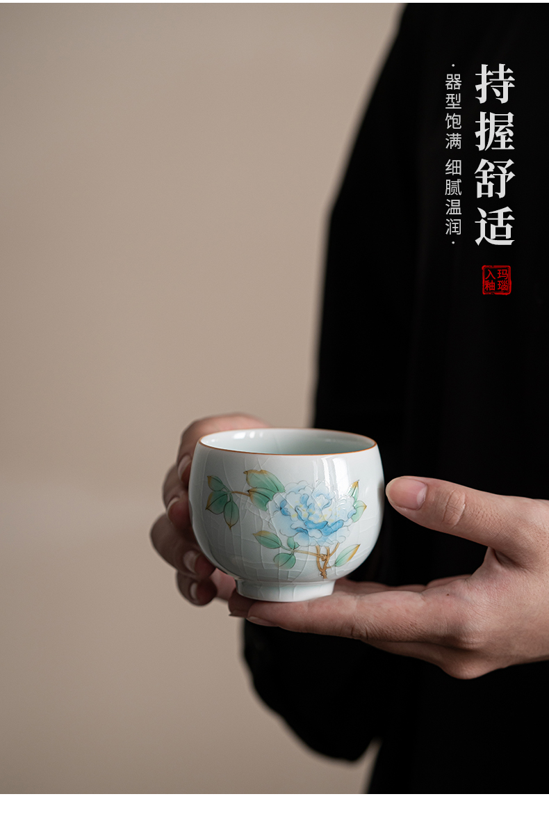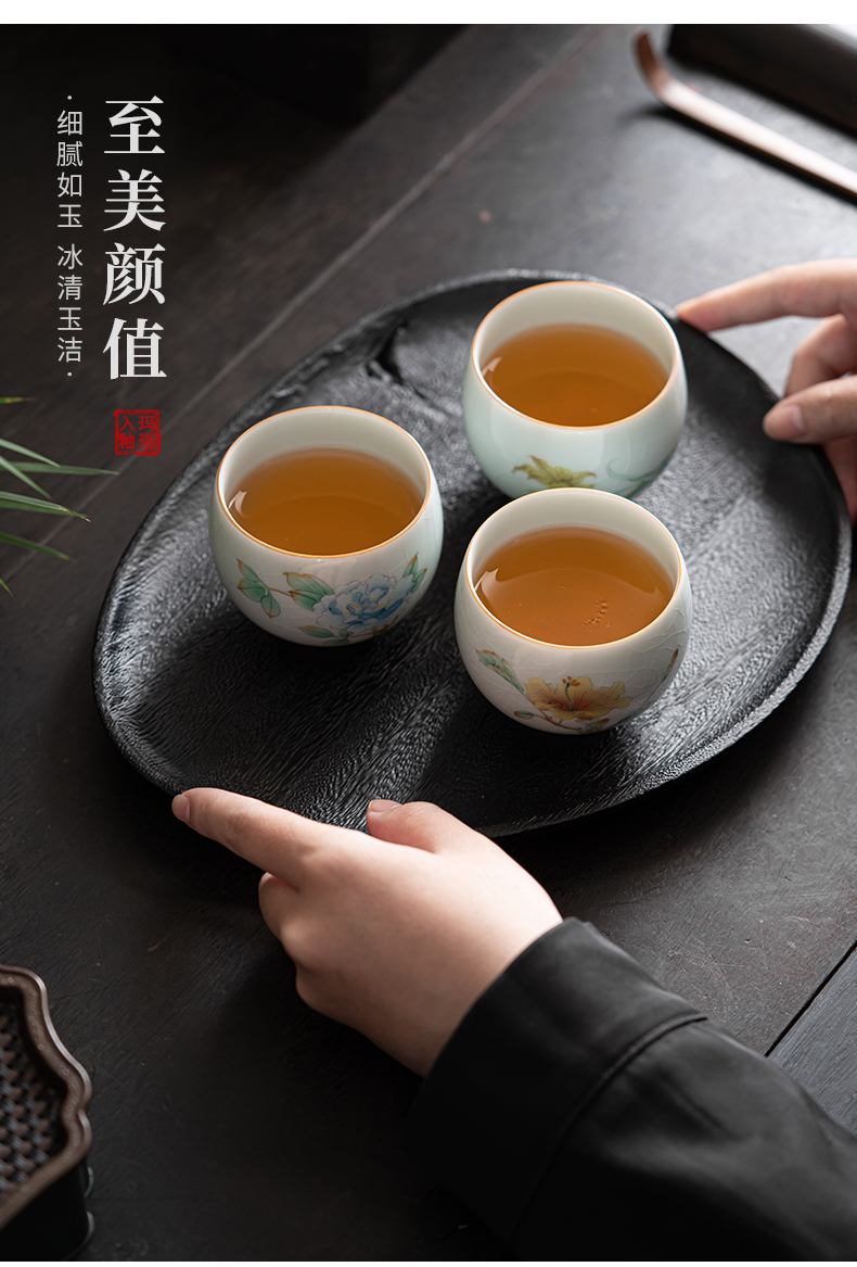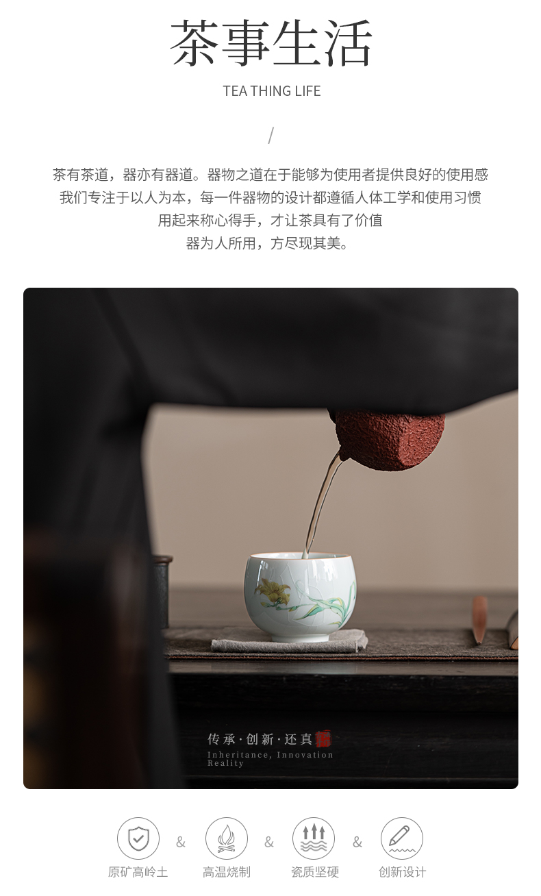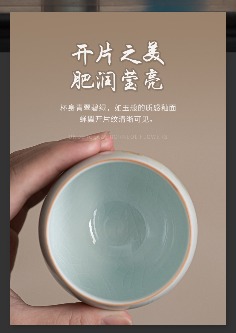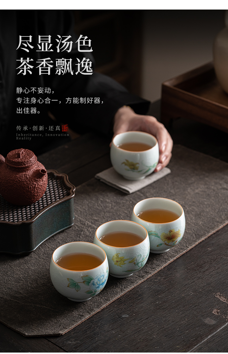 苏氏陶瓷(SUSHI CERAMICS)J0681茶杯汝窑卵青四季平安主人杯4个装(单位:套)