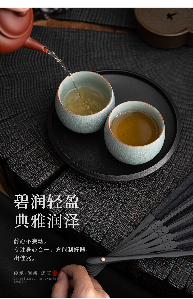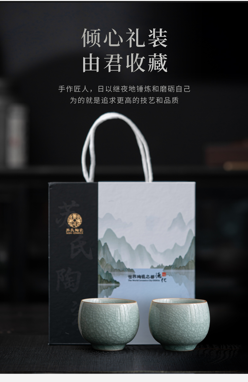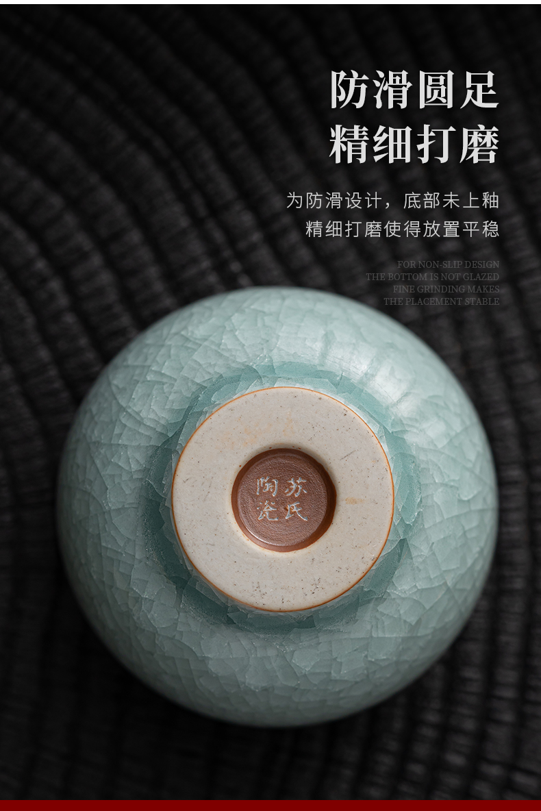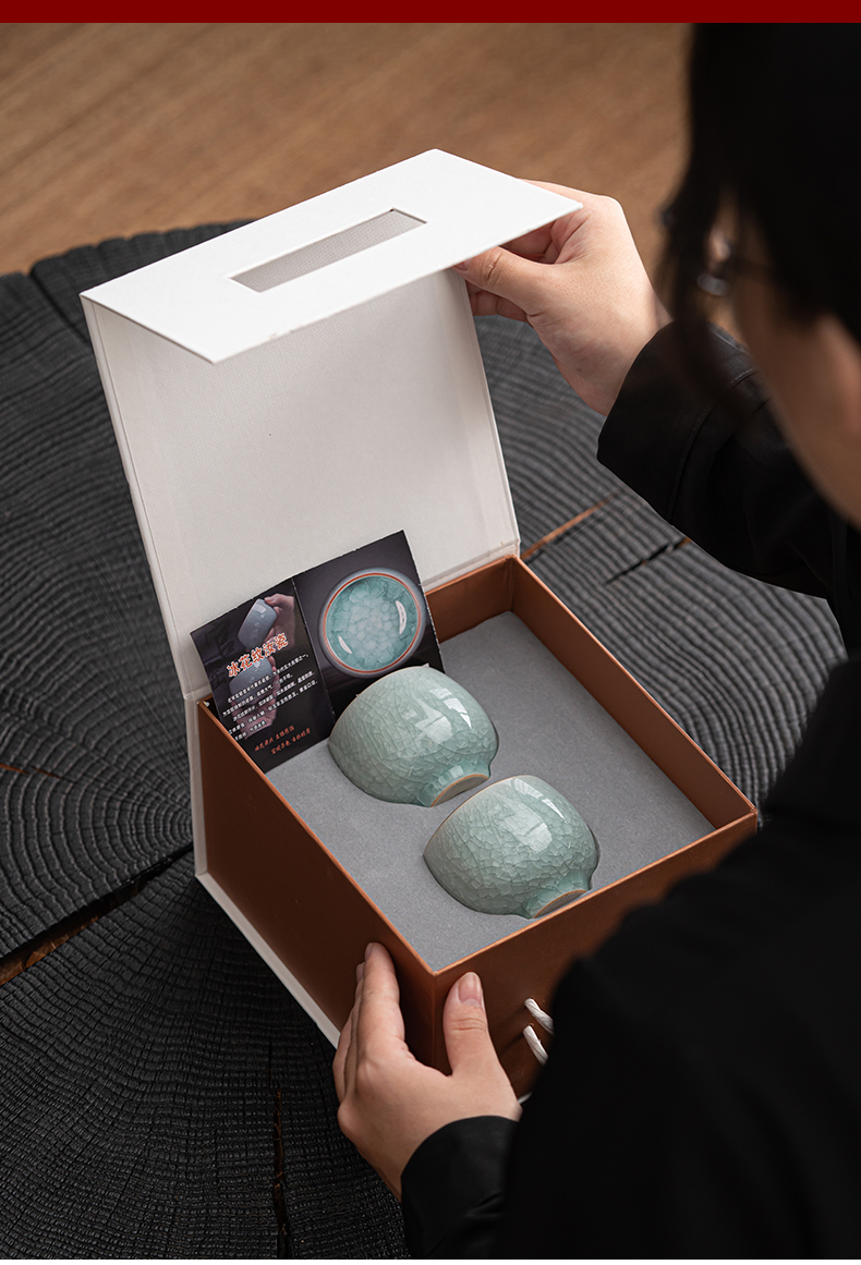 苏氏陶瓷(SUSHI CERAMICS)J0673茶杯汝窑冰花釉禅悟杯2个礼盒装(单位:套) 水蓝色