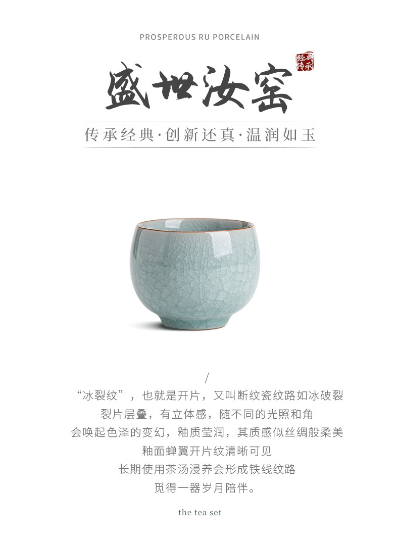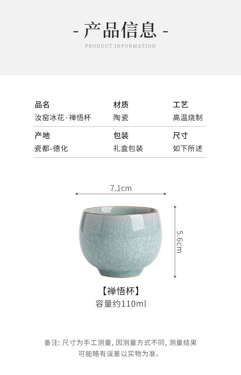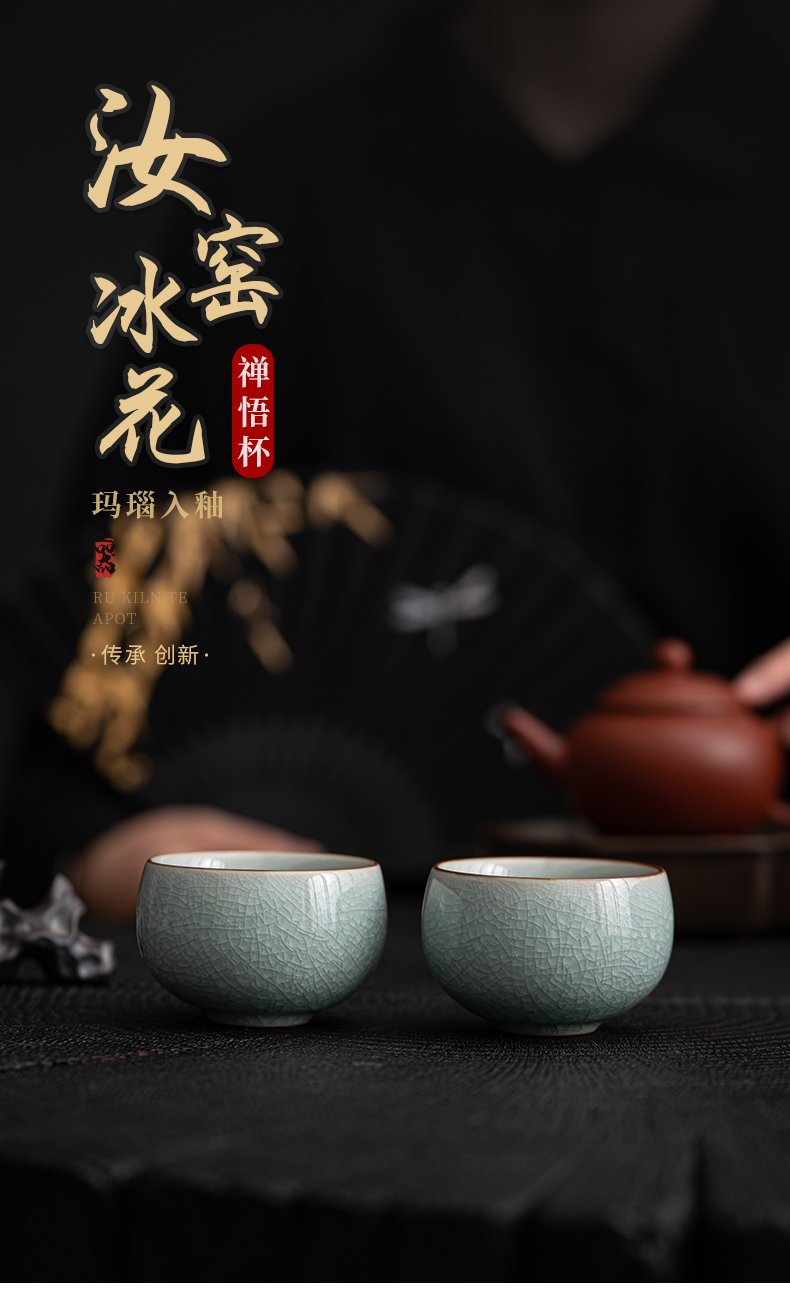 苏氏陶瓷(SUSHI CERAMICS)J0673茶杯汝窑冰花釉禅悟杯2个礼盒装(单位:套) 水蓝色