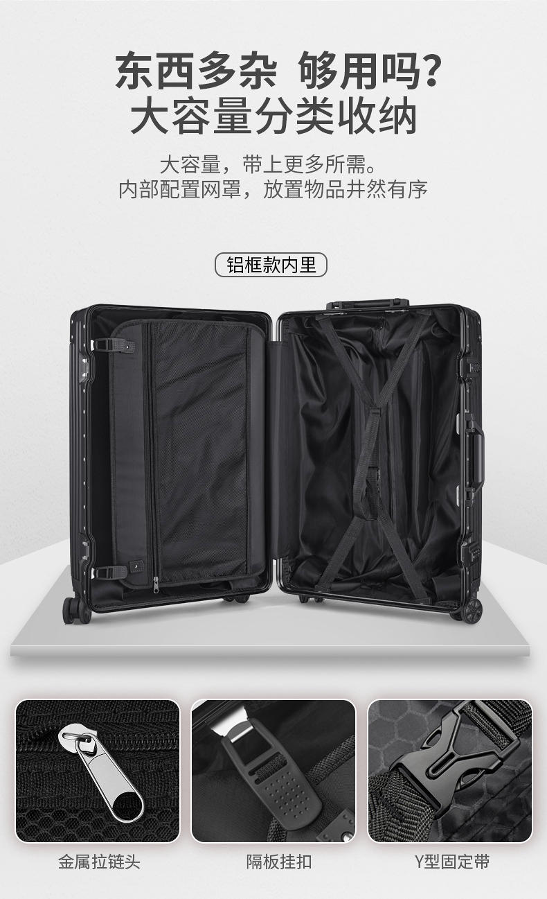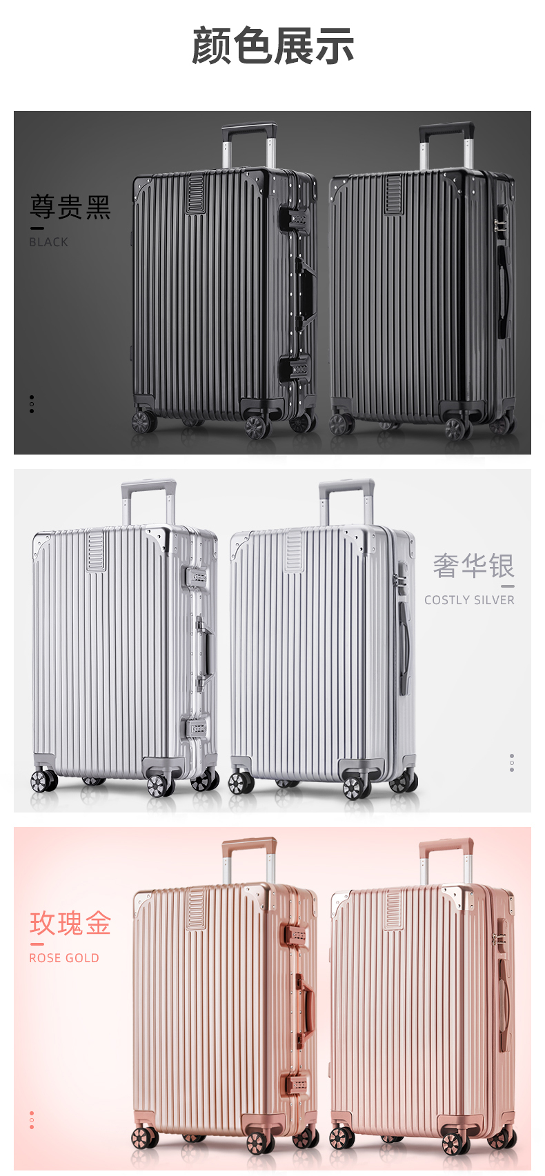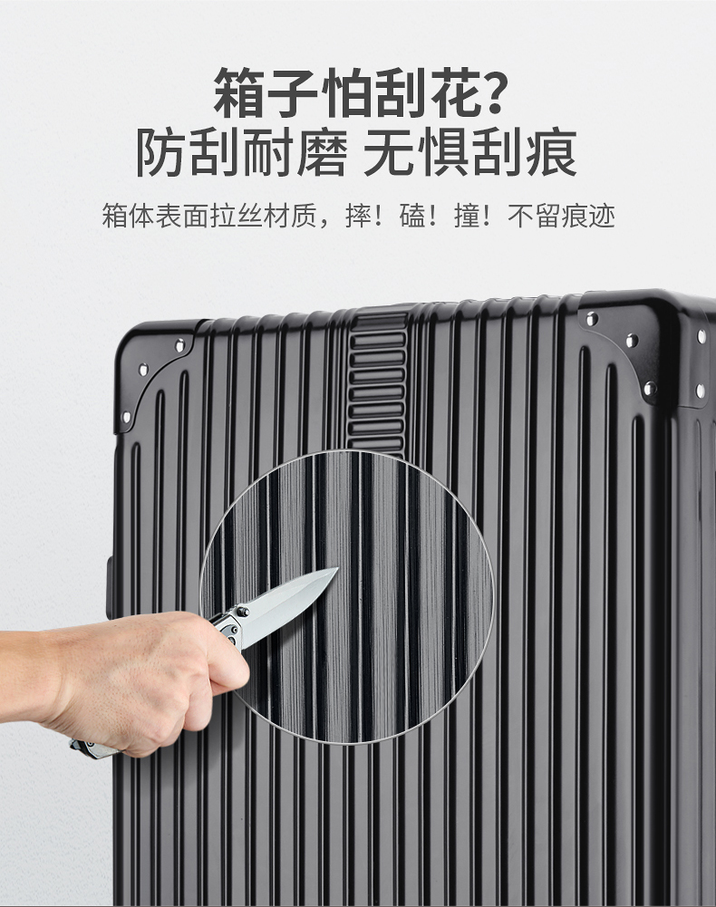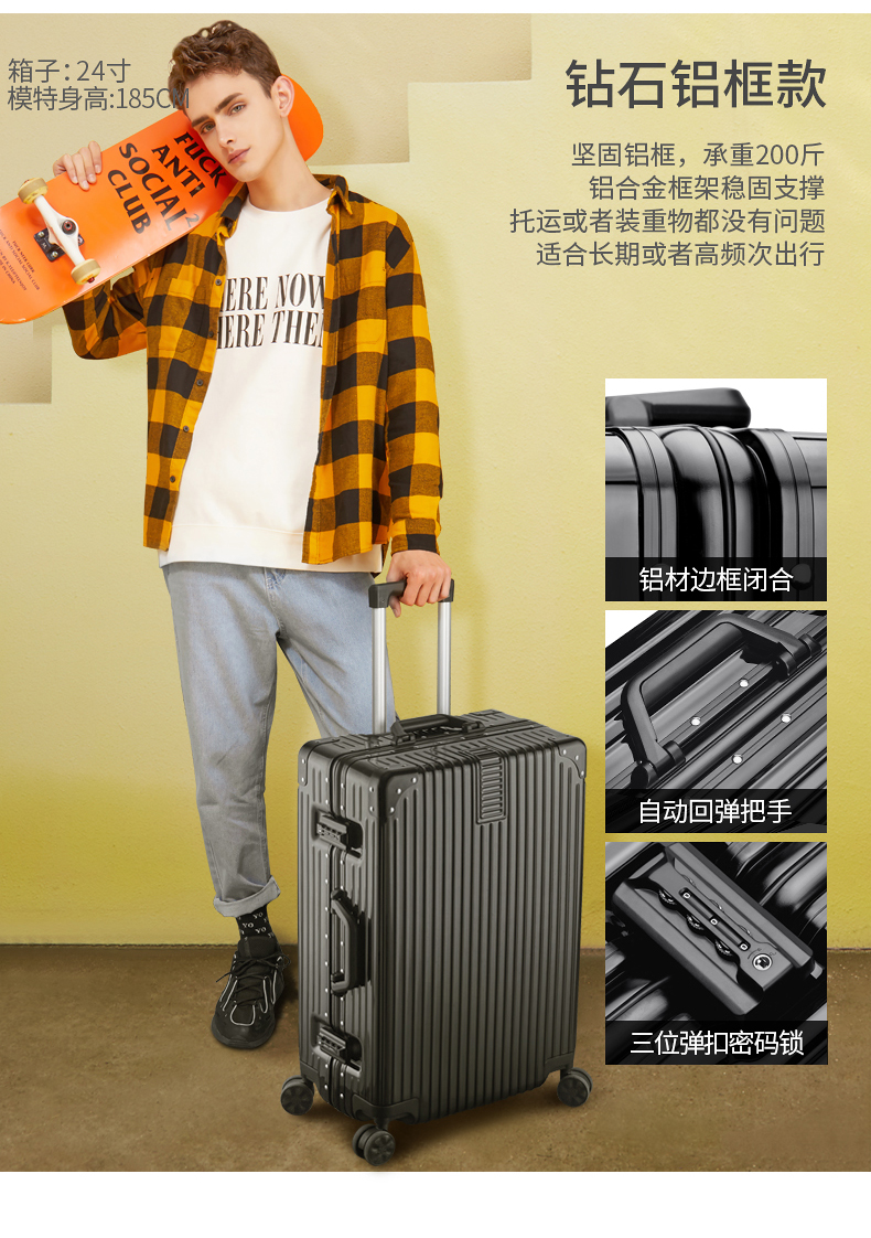 蕉众Banana travel包角条纹铝框拉杆箱L-HL063(单位:个) 黑色 26寸
