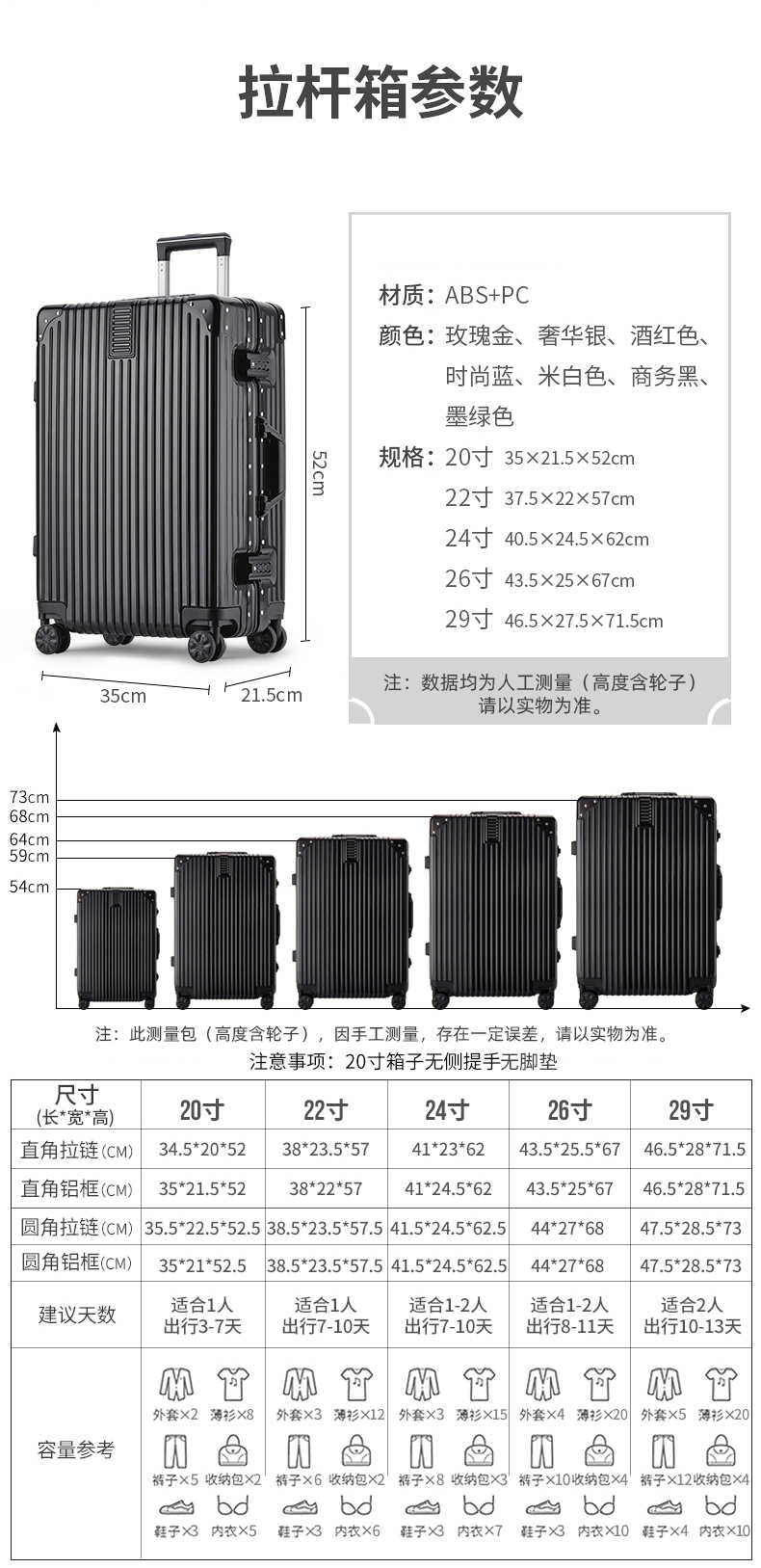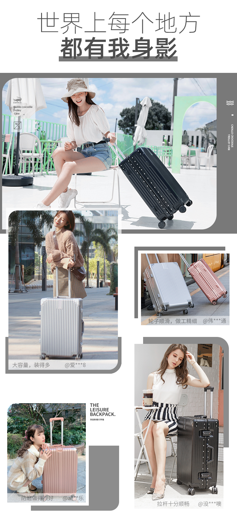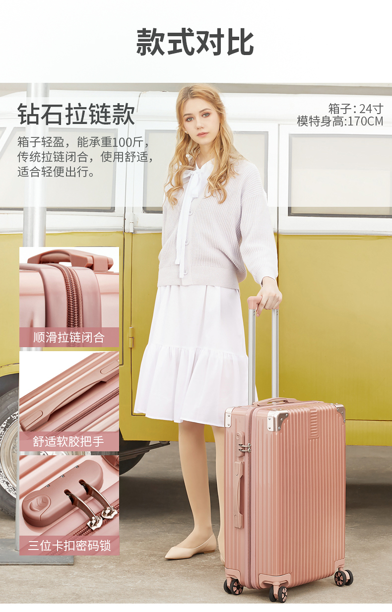 蕉众Banana travel包角条纹铝框拉杆箱L-HL063(单位:个) 黑色 26寸