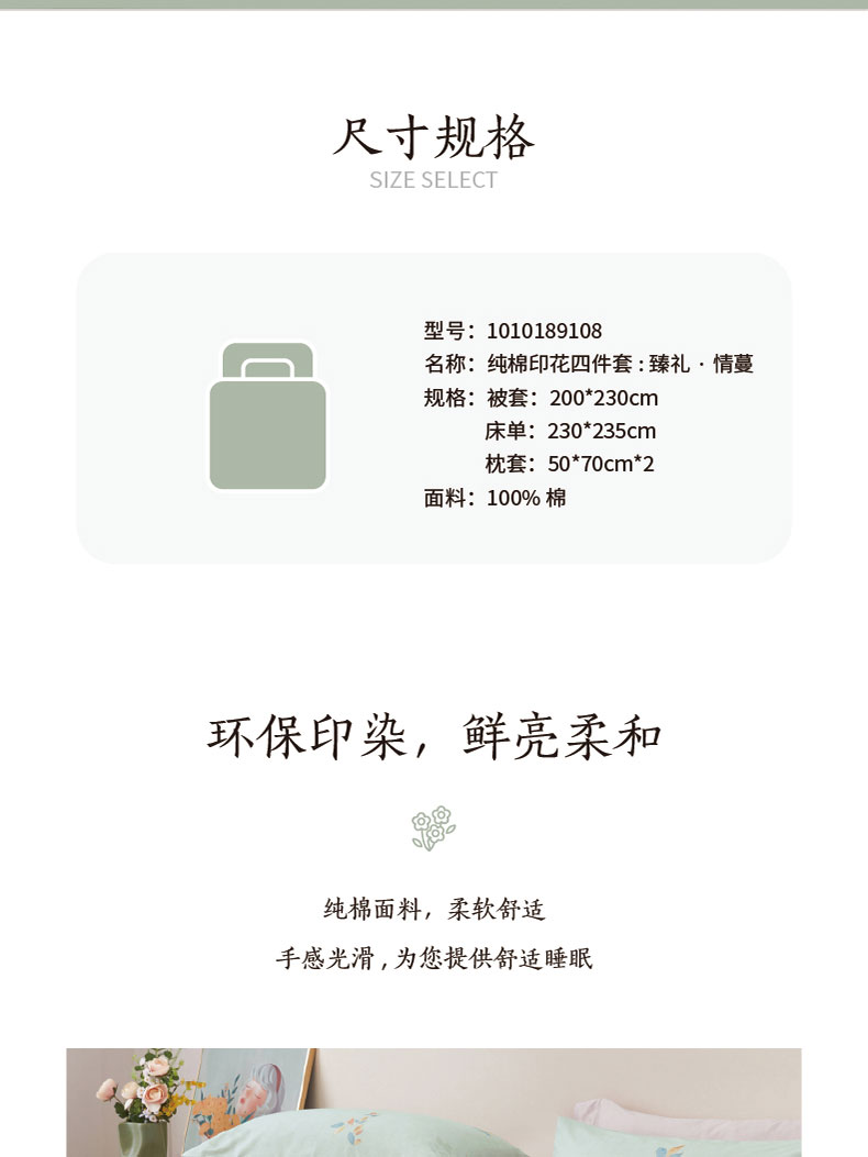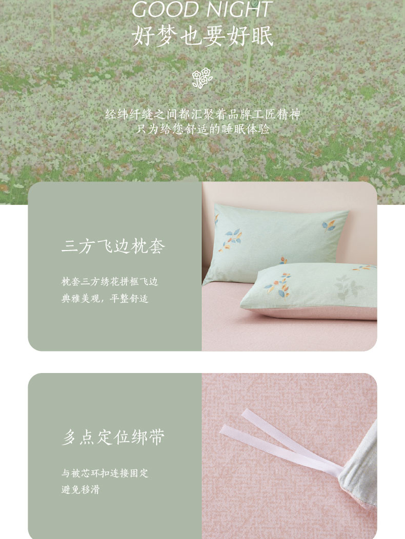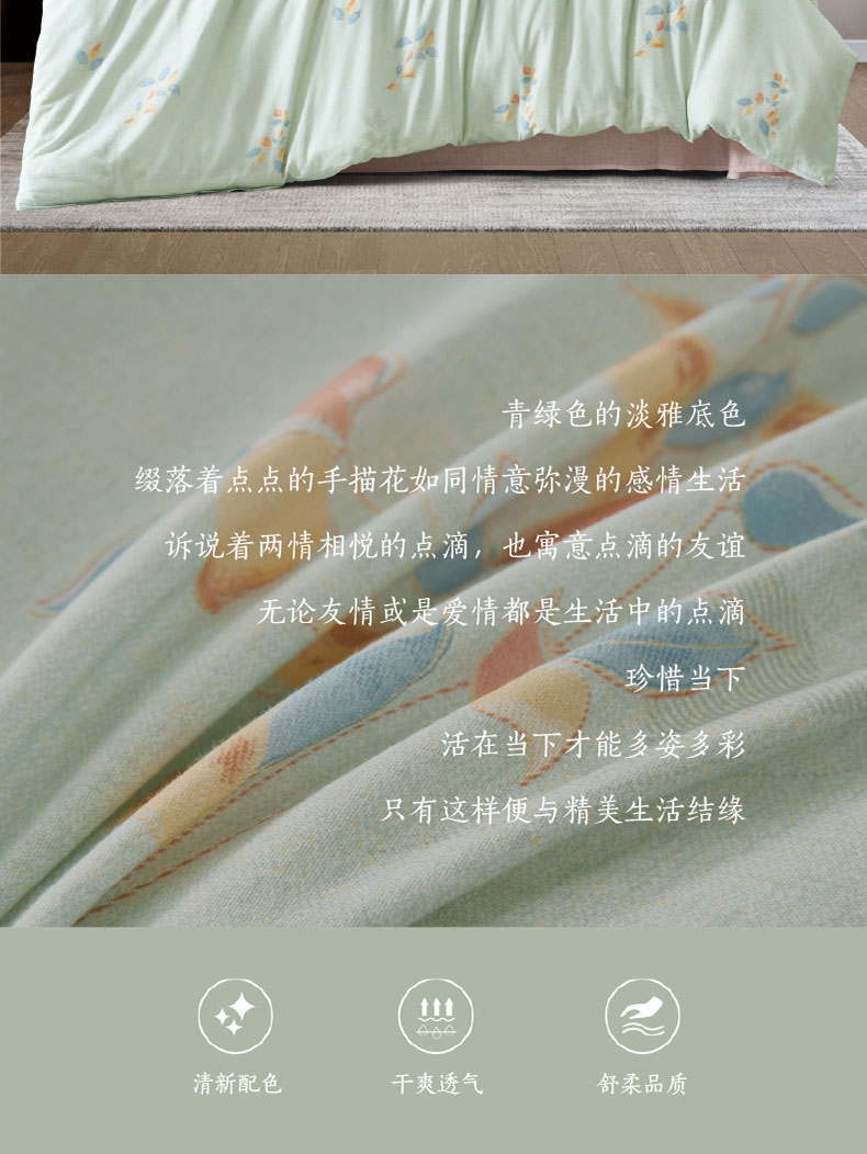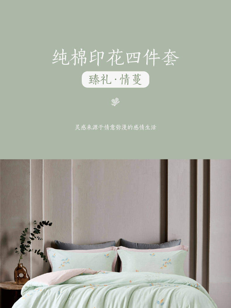 梦洁臻礼纯棉印花四件套:情蔓1010189108 清新色
