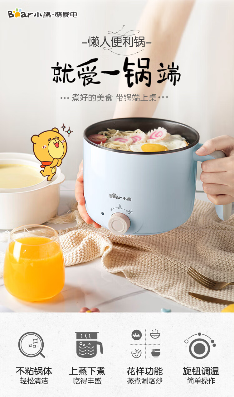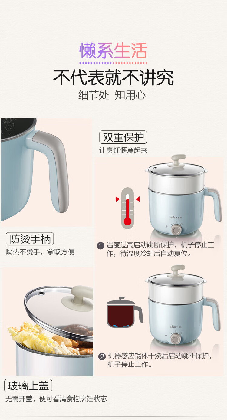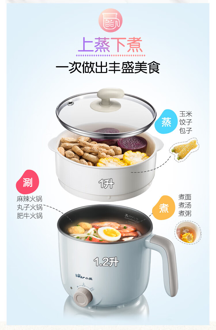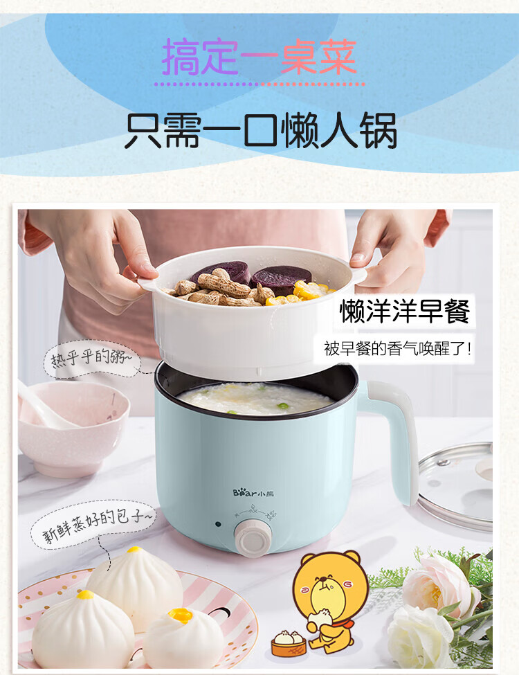 小熊(Bear) DRG-C12R5 电煮锅 1.2L(带蒸笼)/台 浅蓝色
