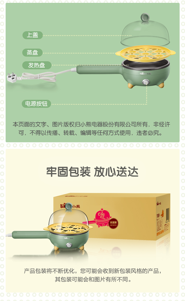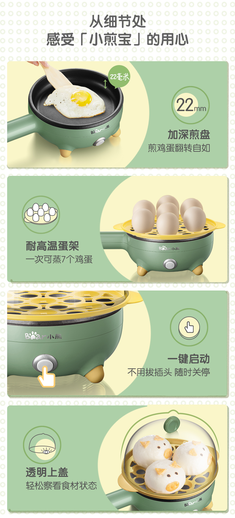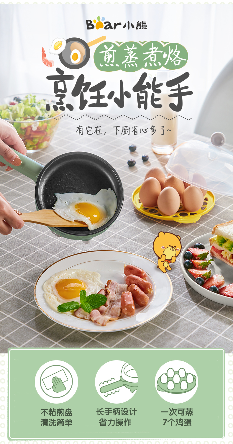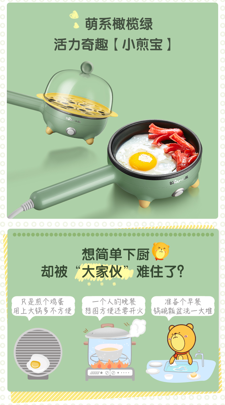 Bear/小熊 JDQ-C3011 煎蛋器 电煎蛋锅 防粘自动调温/台 绿色