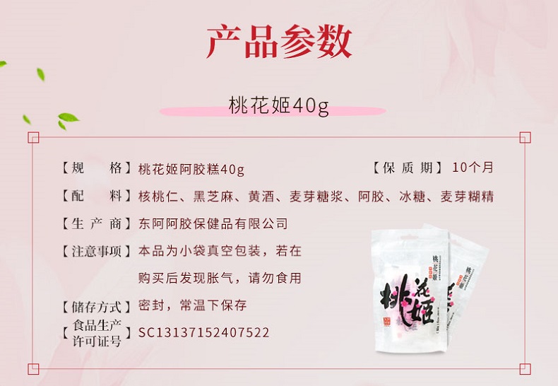 东阿阿胶 桃花姬阿胶糕40g*5袋 白色 白色