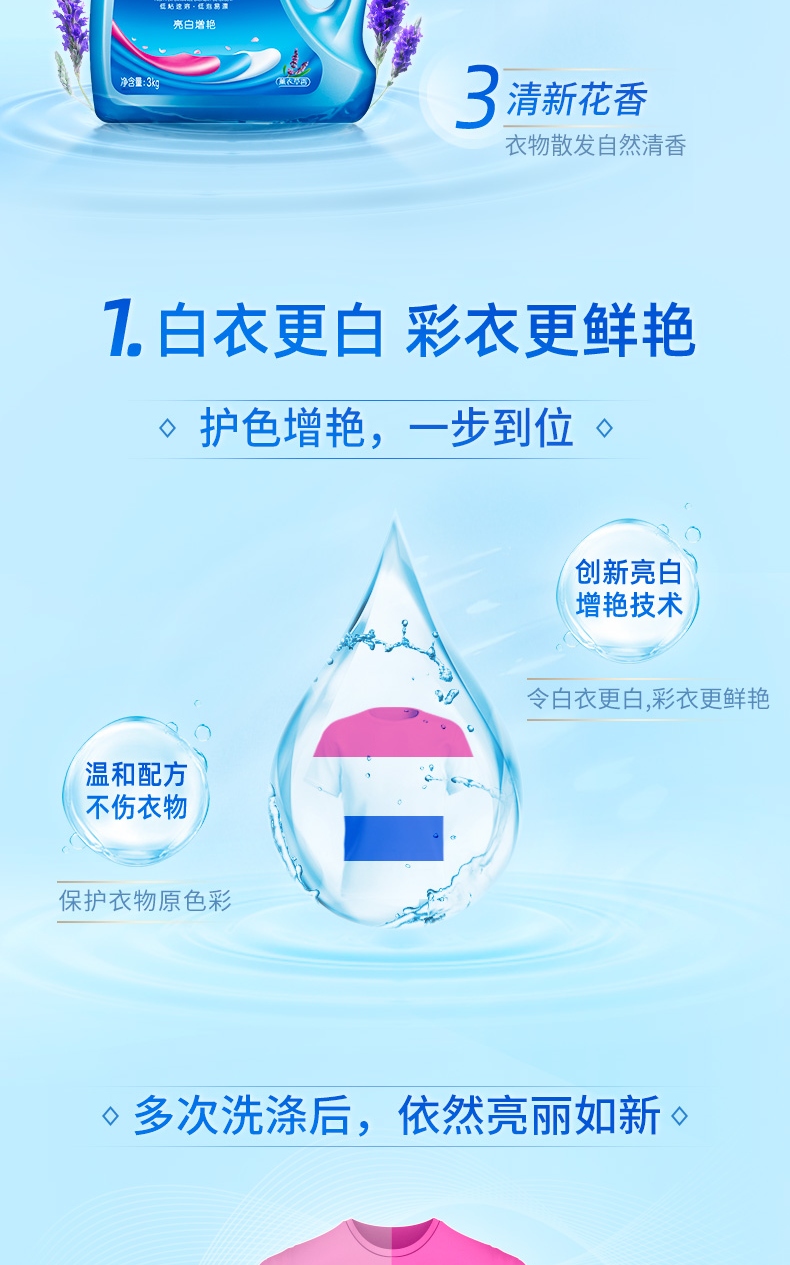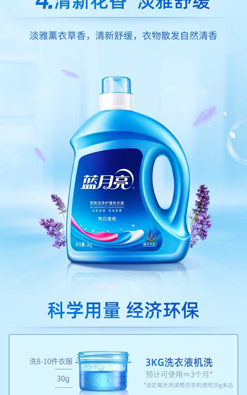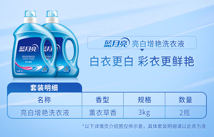 蓝月亮 深层洁净清新花香 80000595 亮白增艳洗衣液3kg*2瓶装 蓝色(单位:套)