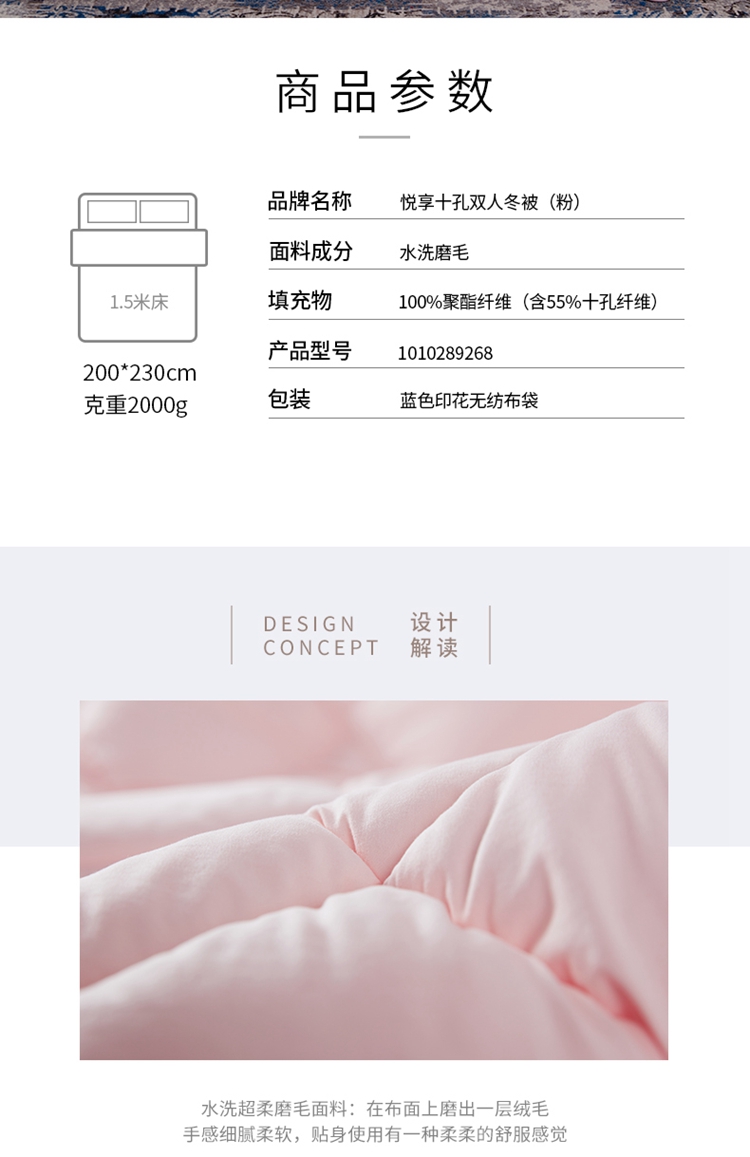 梦洁家纺悦享十孔双人(冬)被被子被芯(单位:床) 粉色