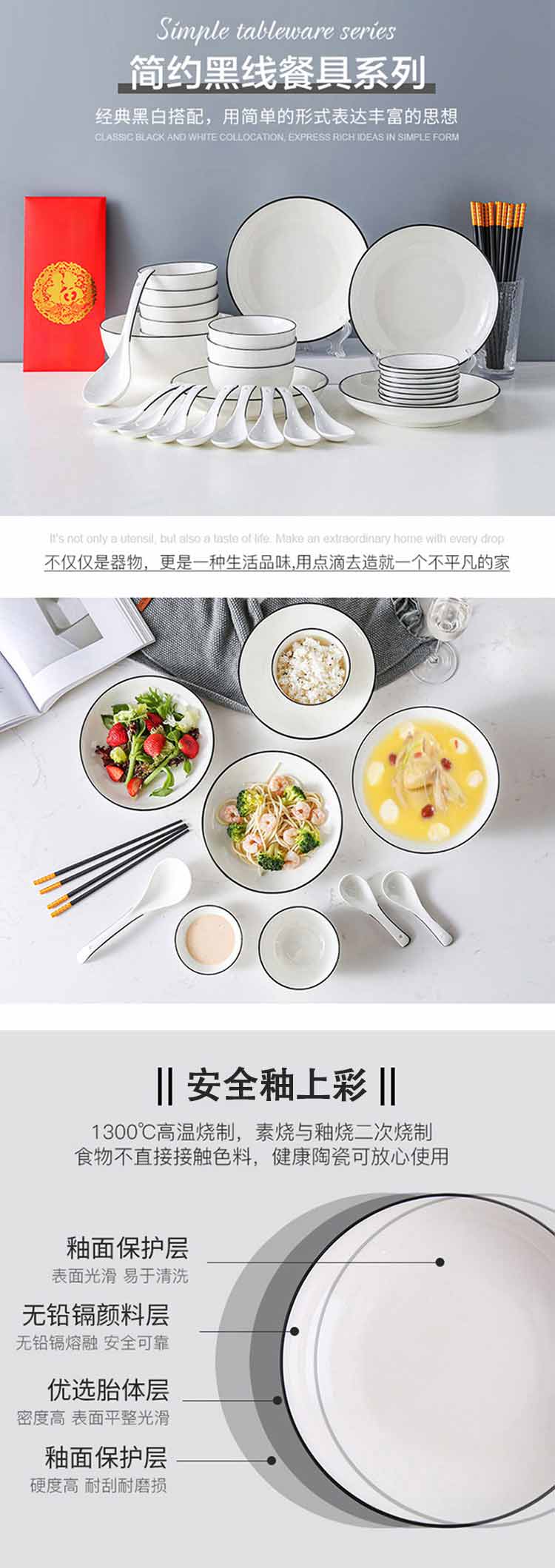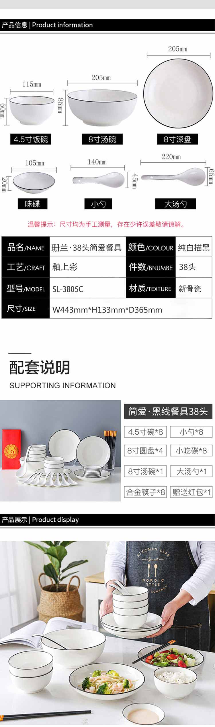 珊兰中式陶瓷38件套简爱餐具套装釉上彩碗碟SL-3805C
