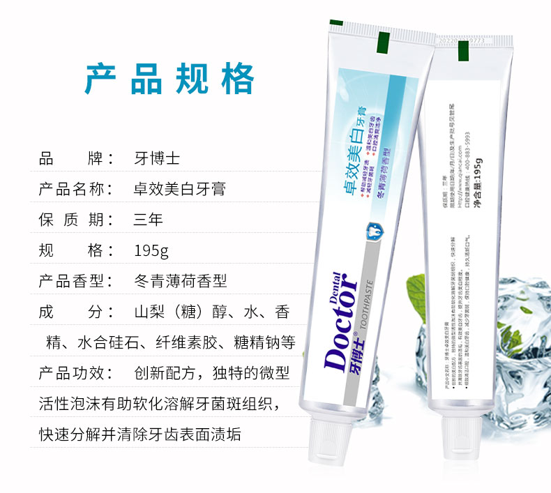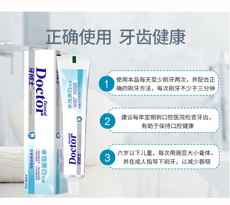 牙博士 牙膏 卓效洁白 195g 白色(单位:支)