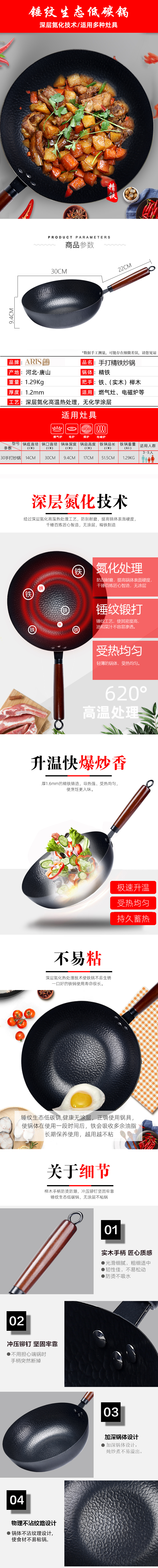 爱依瑞斯ARIS 精铁手打炒锅直径30cm AG-C30FA无锅盖 黑色